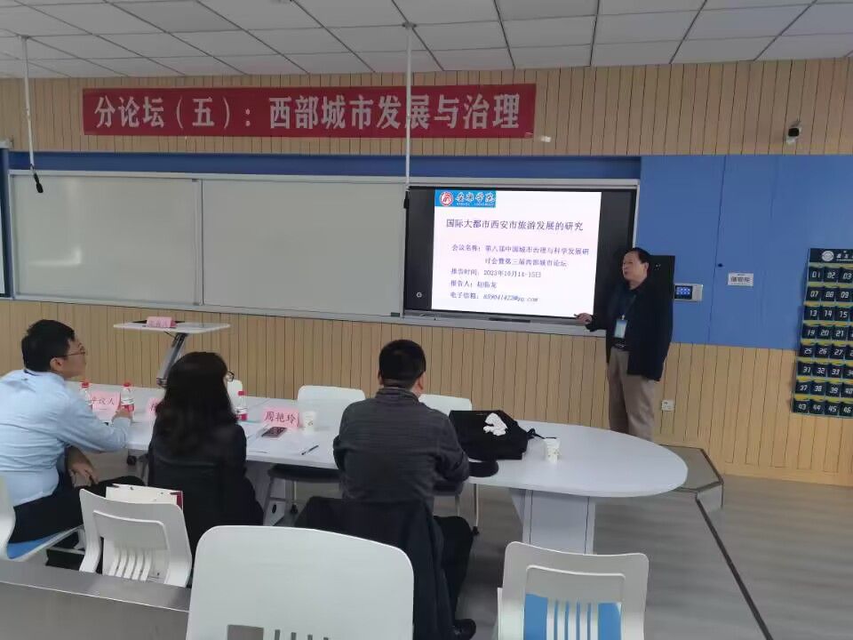 10月14日,第八届中国城市治理与学科发展研讨会暨第三届西部城市论坛在西安建筑大学举行。赵临龙教授应邀做了题为《国际大都市西安市旅游发展的研究》的学术报告,报告从西安市在中国的重要位置、西安市旅游状况分析、西安市旅游效益的交通因素分析和西安旅游发展的建议等四个方面进行论述,得到点评专家的充分肯定。