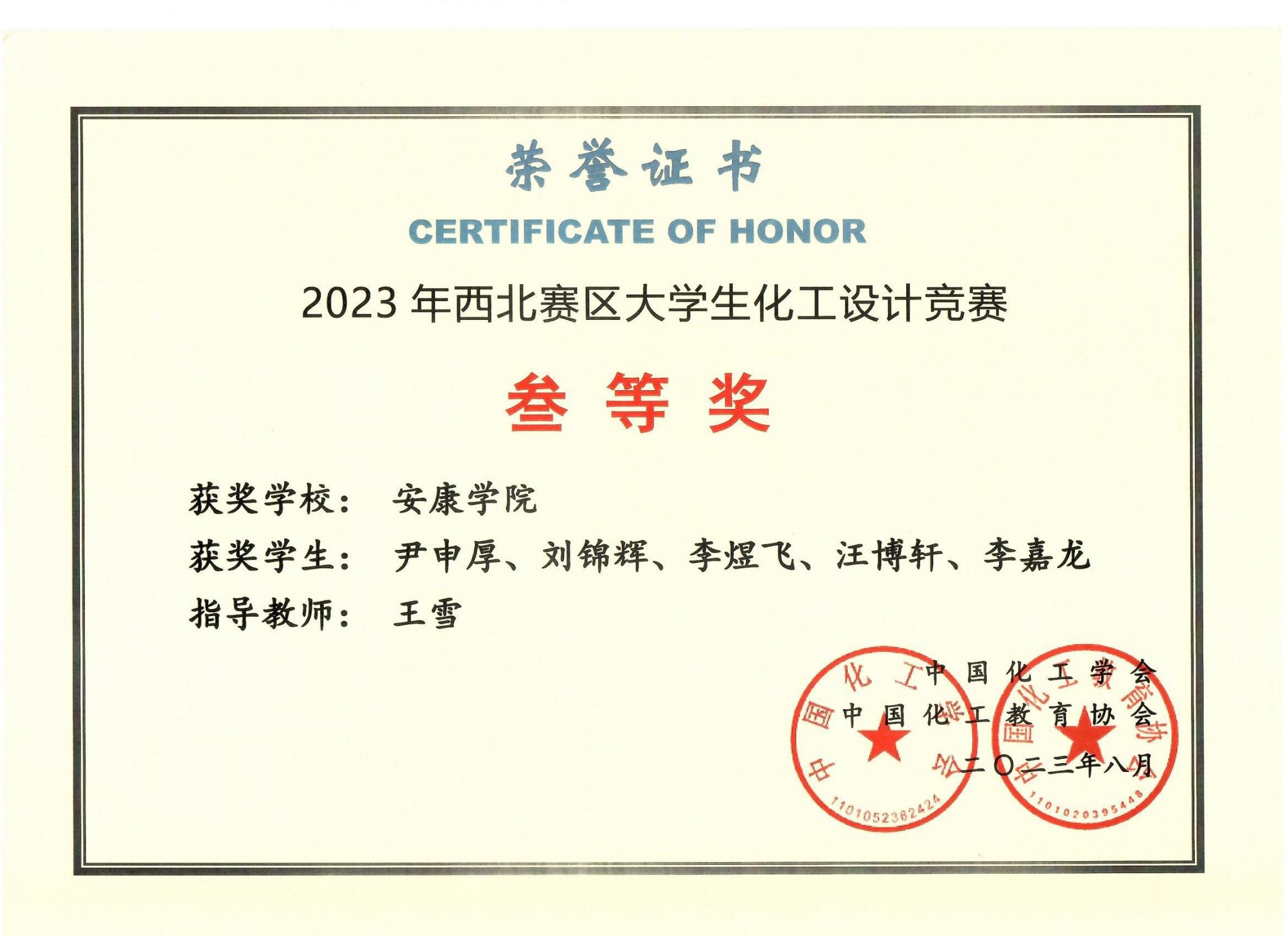 本次竞赛以“为某大型化工企业设计一座用于己二腈清洁生产的分厂,要求技术符合我国绿色低碳循环发展要求”为主题,吸引了来自全国各地的优秀学子积极参与。经过激烈角逐,Beat365化学工程与工艺专业2020级学生郭佳欣、张希越、张智明、樊天祥、孙玮琦组成的“化学分子队”获得了全国二等奖,尹申厚、李煜飞、汪博轩、李嘉龙、刘锦辉组成的“腈彩杰伦队”获得了西北赛区三等奖。