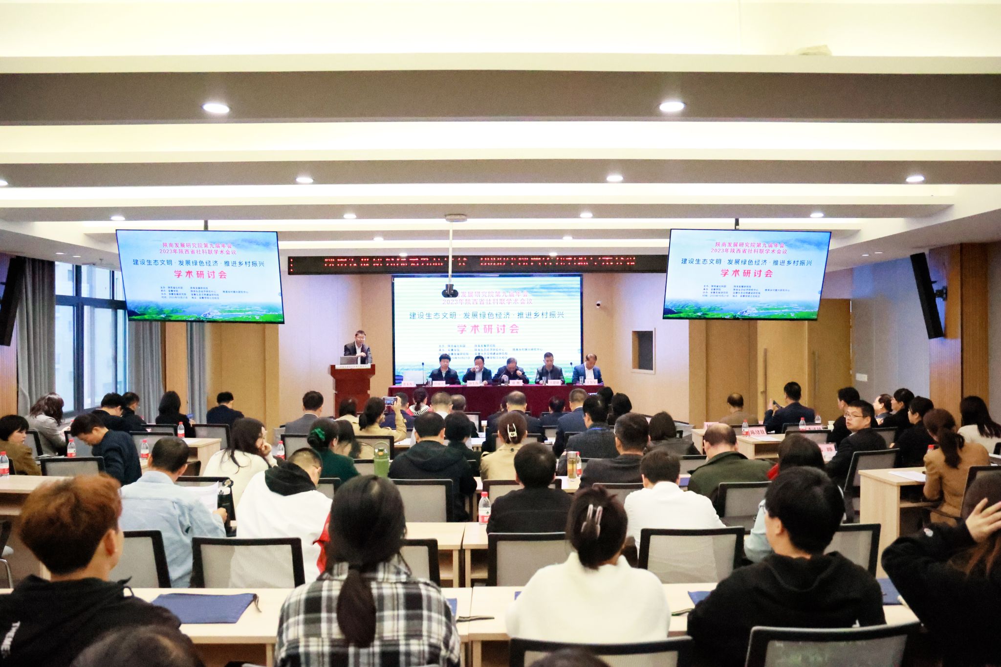 10月27日,由陕西省社科联、陕南发展研究院主办,Beat365唯一官方网站、陕南生态经济研究中心、陕南乡村振兴研究中心承办,安康发展研究院、安康生态文明建设研究院协办的“陕南发展研究院第九届学术年会暨2023年陕西省社科联学术会议”在Beat365召开。来自陕南3所高校、安康市政府部门的50余名专家学者及Beat365100余名师生齐聚安康,共话“建设生态文明•发展绿色经济•推进乡村振兴”,共商中国式现代化道路上陕南经济社会发展的路径方法。