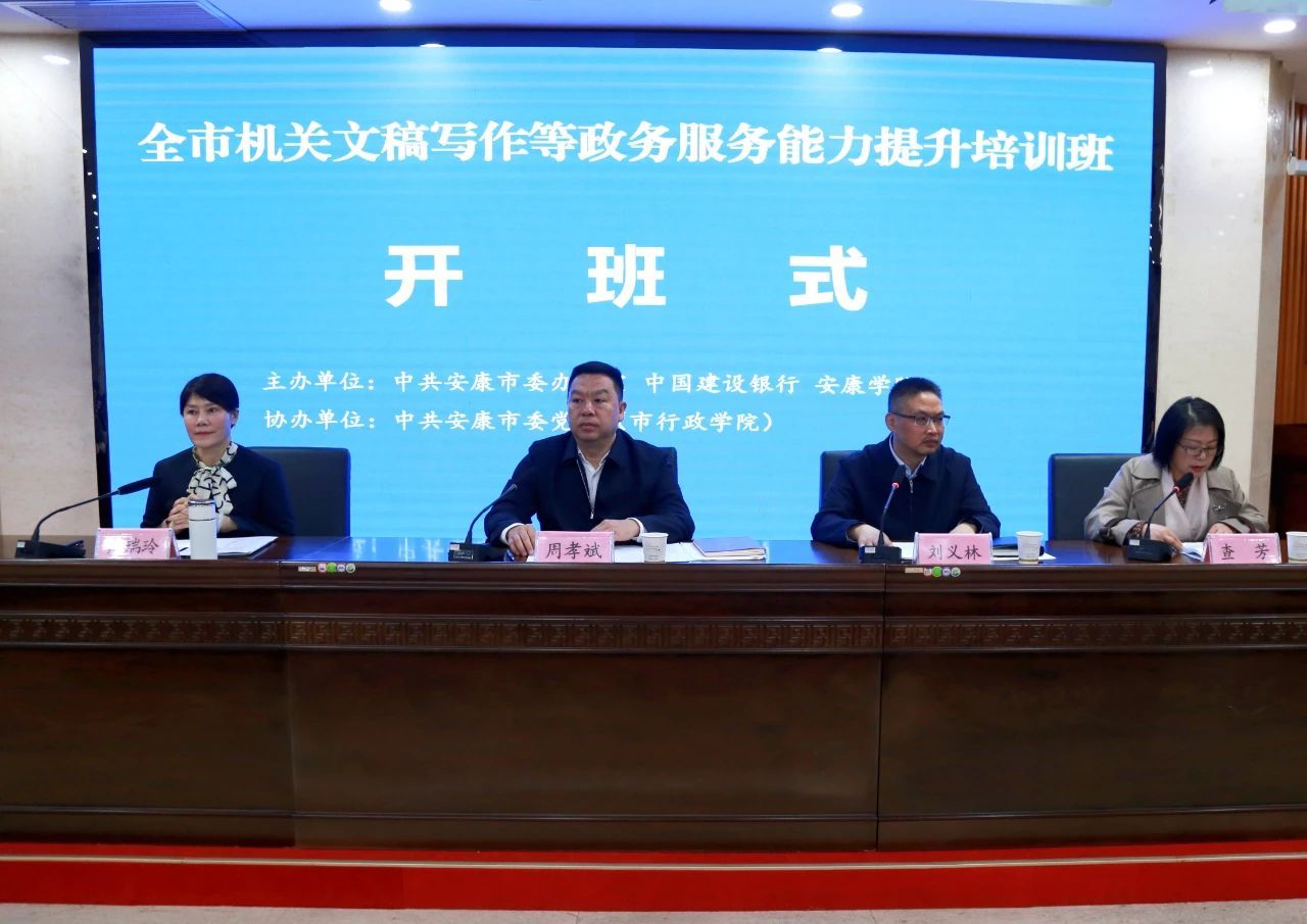 11月3日,由安康市委办、中国建设银行、Beat365唯一官方网站主办,Beat365唯一官方网站乡村振兴学院承办,安康市委党校协办的全市机关文稿写作等政务服务能力提升培训班开班。市委秘书长周孝斌,市委党校常务副校长周瑞玲,Beat365唯一官方网站继续教育学院院长、乡村振兴学院副院长查芳,市委办公室领导班子成员,培训班(第一期)全体参训学员共计100余人参加会议。会议由市委副秘书长、办公室主任刘义林主持。