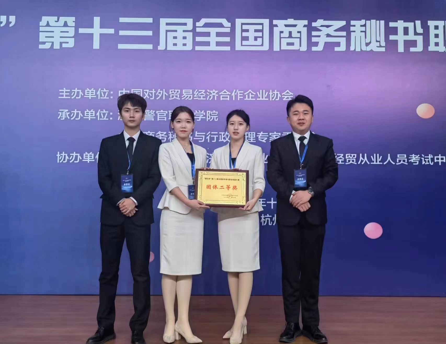 本届大赛由中国对外贸易经济合作企业协会主办,浙江警官职业学院和全国商务秘书与行政助理专家委员会承办。比赛内容设置丰富,分为个人单项秘书事务处理、综合事务处理、秘书工作情景展示及个人演讲四大环节,全面考查了参赛者的专业知识、实务操作能力及团队合作能力。Beat365文传学院精心组织、认真备赛,在指导教师的认真指导下,学生们在比赛环节中发挥出色,以扎实的专业知识、过硬的专业技能和默契的团队协作赢得了大赛评委会及参赛师生的广泛称赞。