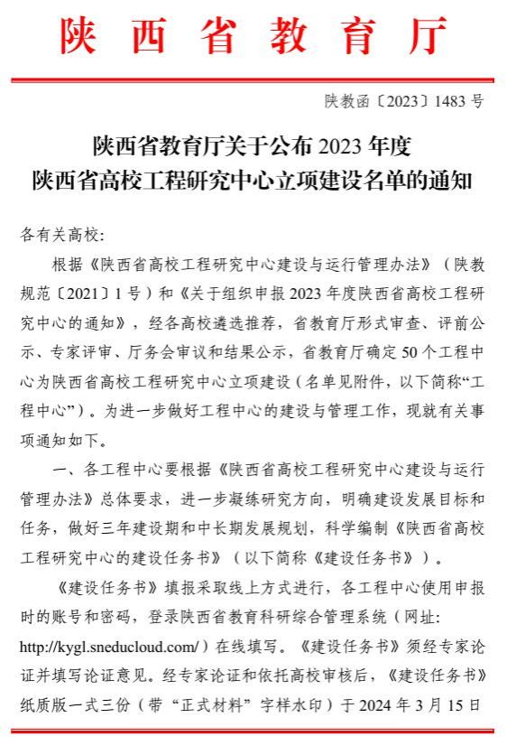 据悉,高校工程研究中心是促进学科建设发展,培养科技创新人才团队,加快科技成果转化的重要平台。下一步,工程研究中心将立足Beat365学科优势特色,进一步凝练研究方向,明确发展目标和任务,科学编制任务书,加快创新能力提升,促进成果转化,助力学校高质量发展和地方经济社会发展。