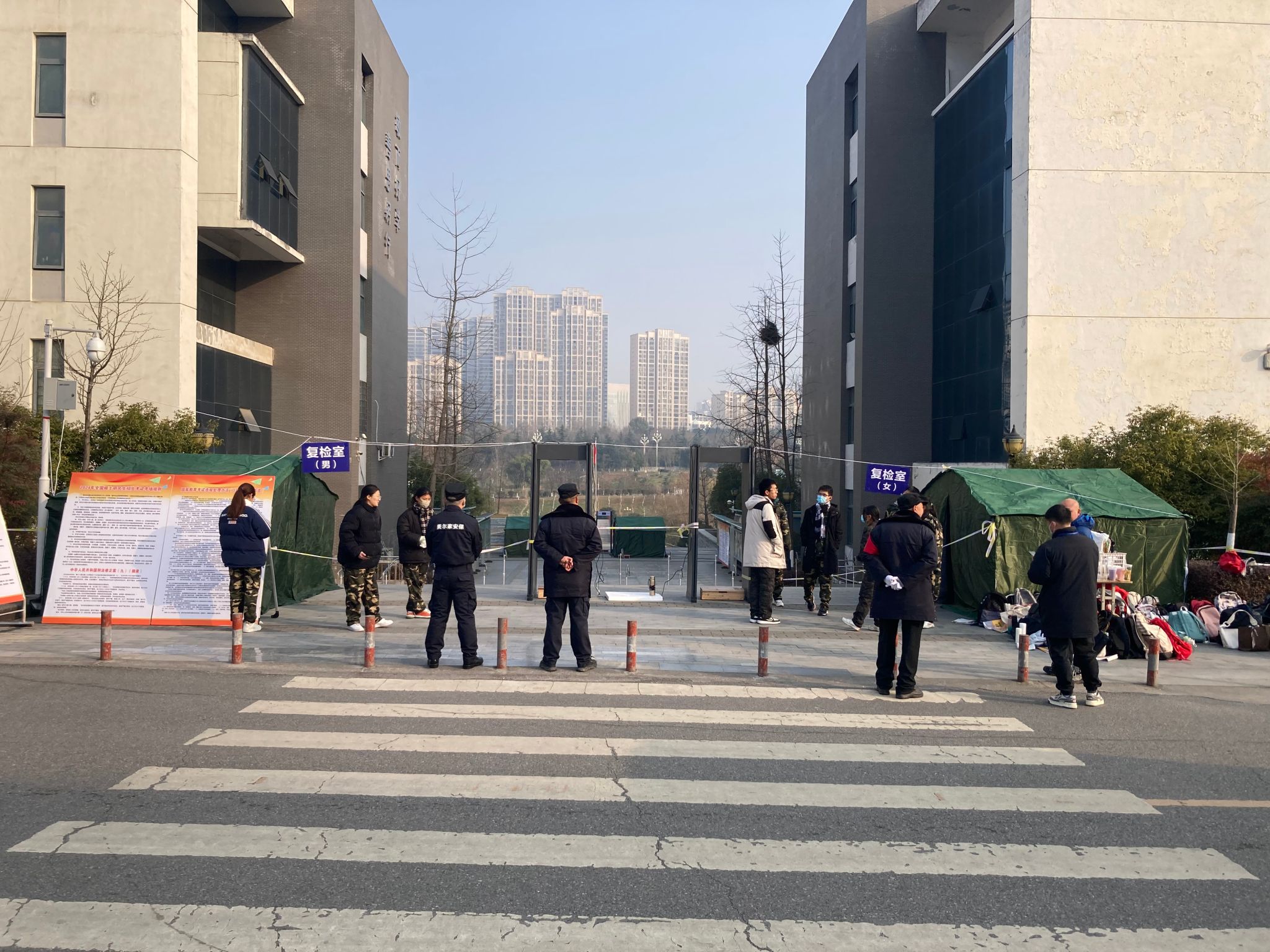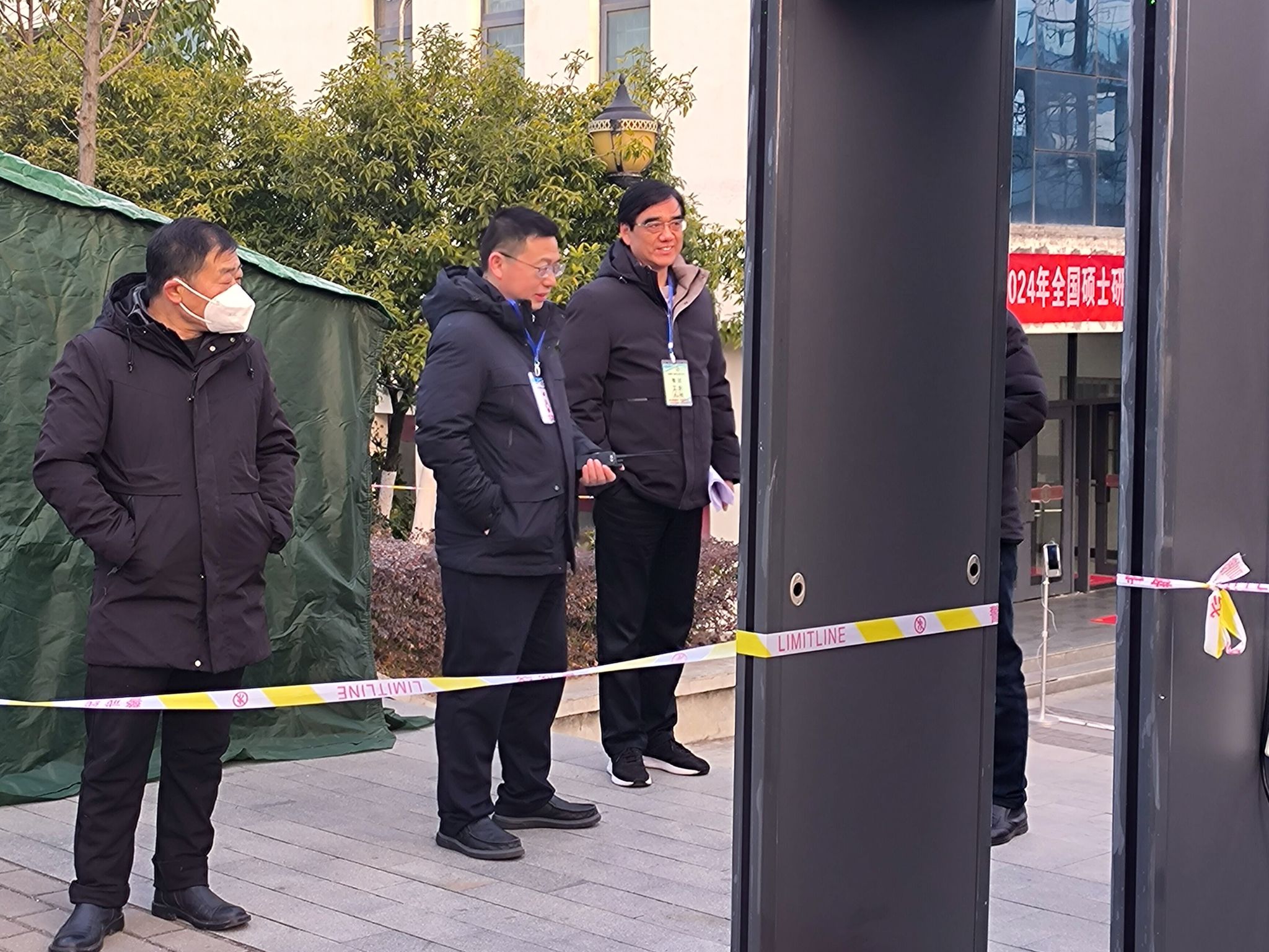 今年,防范手机等高科技作弊是研考安全的重中之重。Beat365考点首次配备智能安检门4台、物品存放处6间,每个考场均配备手持金属探测器、无线电信号屏蔽仪。考前,通过多种渠道做好信息发布和政策解读,并就考生入校组织、考场引导、手机存放、安检门入场等场景开展实地模拟演练。考试期间,工作组因时因地现场调度,安排学生志愿者现场引导,考生寄存物品、安检入场、离场休息等环节井然有序。严格考生入楼、入场、如厕“三检”工作,实现考场封闭区域安检全覆盖,确保手机“带不进”“用不了”“传不出”,进一步守住考场安全的“主阵地”。