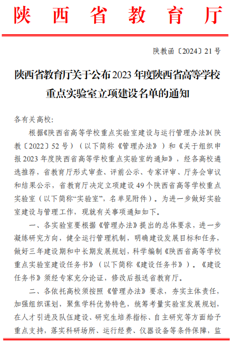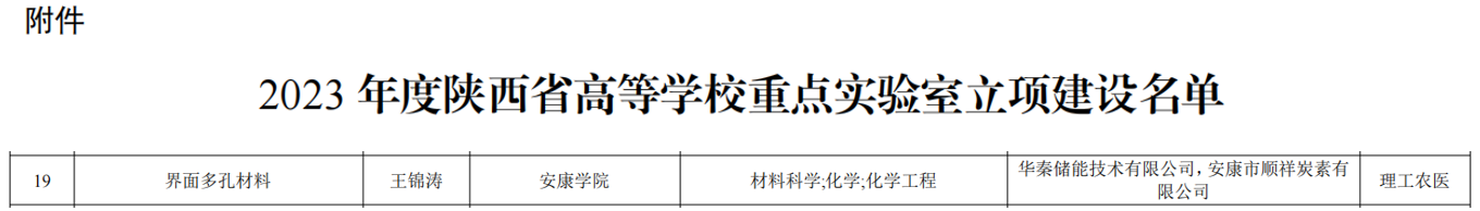 近日,陕西省教育厅发布了《陕西省教育厅关于公布2023年度陕西省高等学校重点实验室立项建设名单的通知》,Beat365科创驿站驻站科技人员、化工学院青年教师王锦涛博士牵头申报的“界面多孔材料陕西省高等学校重点实验室”获批立项建设。