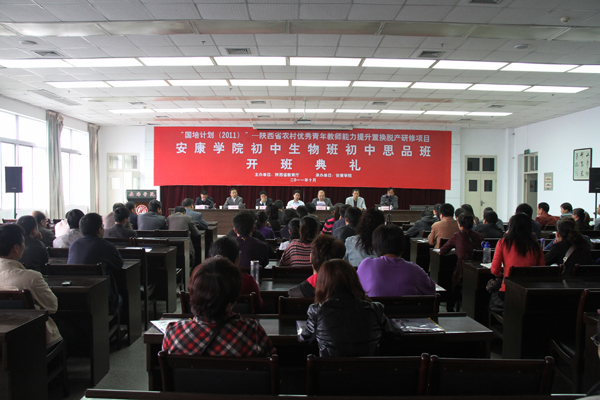 10月12日,由我院承办的“国培计划(2011)”—陕西省农村优秀青年教师能力提升置换脱产研修项目初中生物学科和初中思品学科培训班,在我院图书馆六楼多功能报告厅隆重举行,我院副院长陈刚、陕西省教育厅师资师范处副处长朱晓冬、陕西师大干部教师培训学院研修二部主任苏理、陕西省教育厅教师资格认定中心主任韩润社、我院政治与历史系主任(初中思品学科项目首席专家)何家理、我院农学与生命科学院党总支书记(初中生物学科首席专家)屈国胜出席,我院继续教育学院副院长(项目负责人)王永东主持。