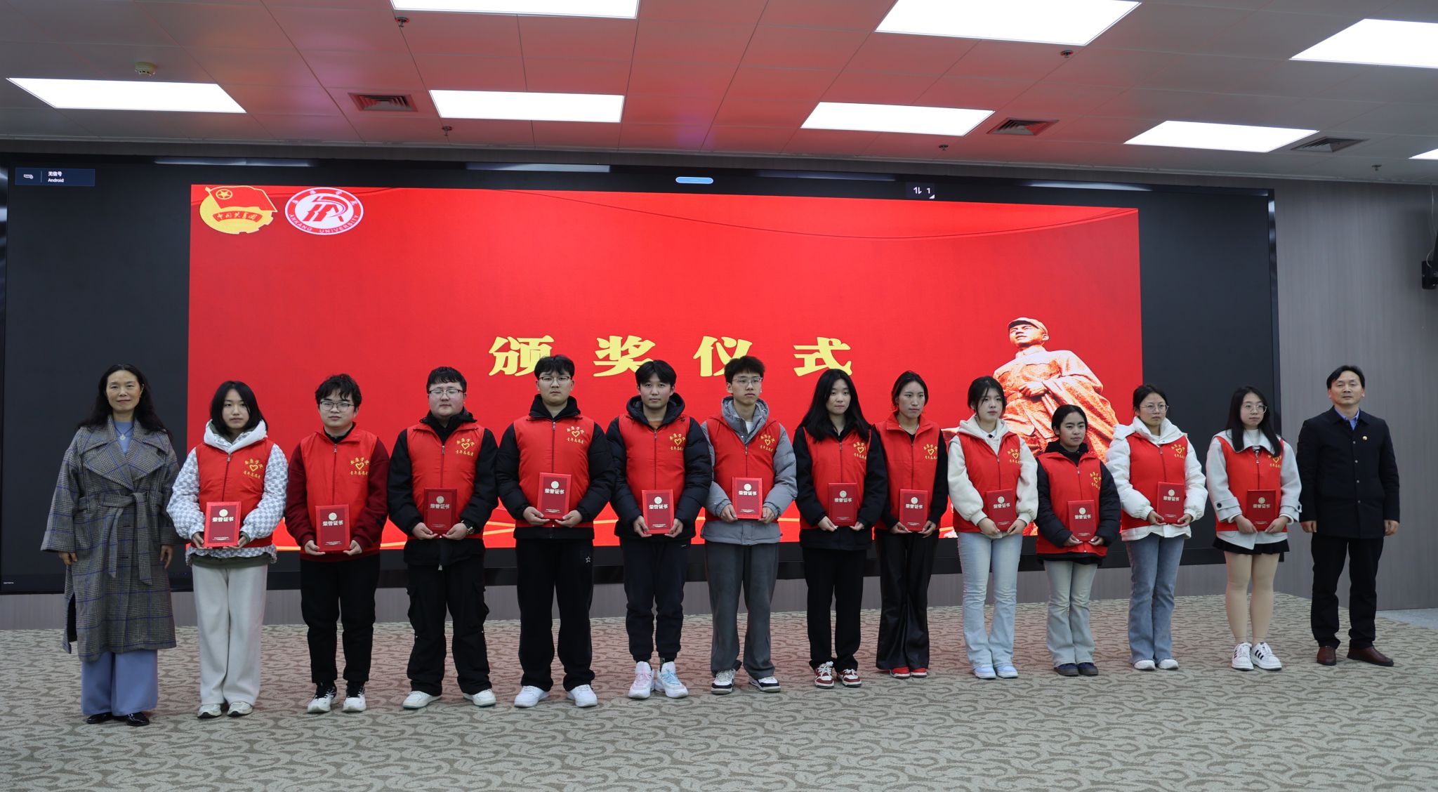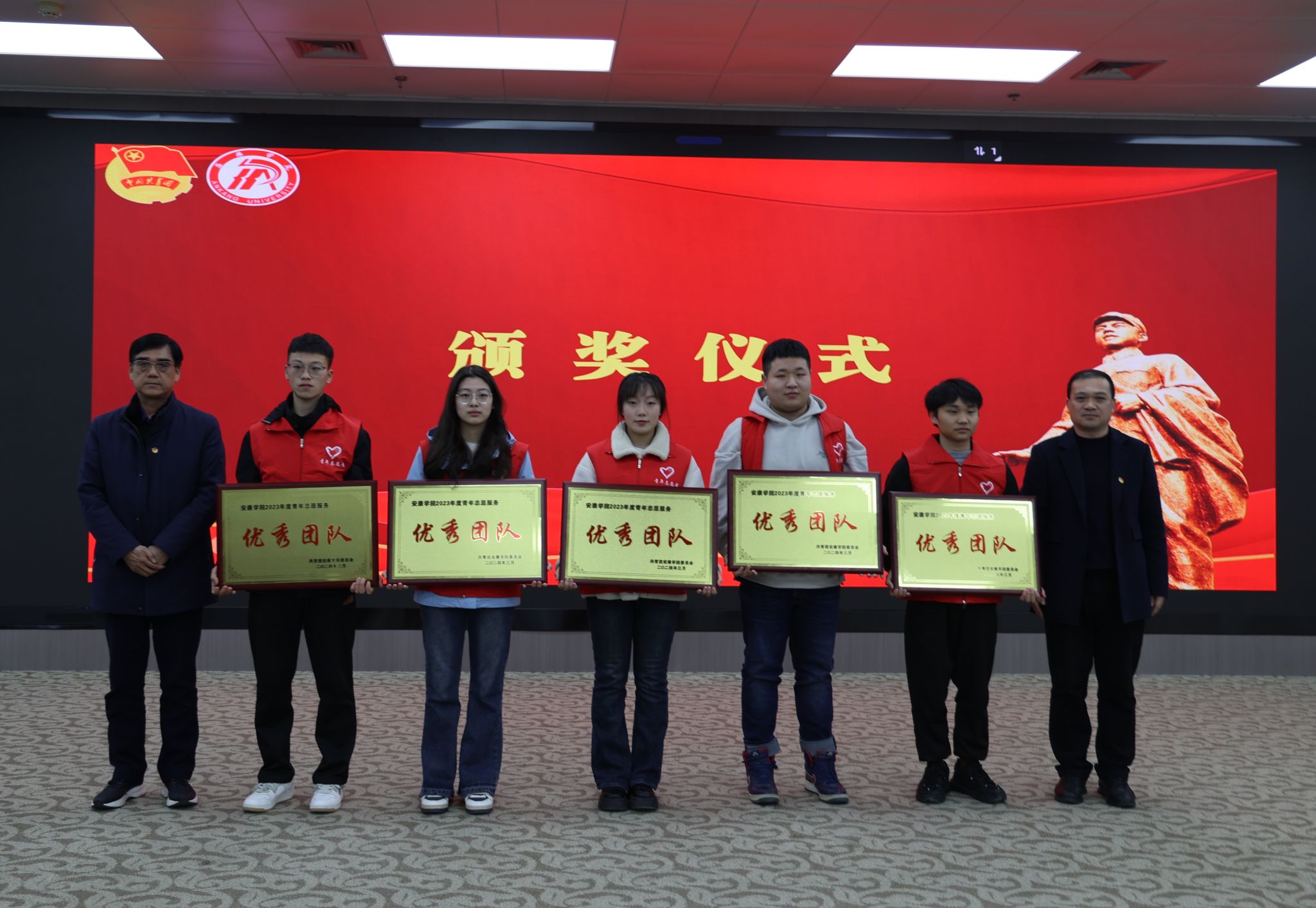 颁奖仪式上,学工部部长李岩宣读了《Beat365唯一官方网站2023年度青年志愿服务优秀团队和先进个人表彰文件》,二级学院党总支书记和职能部门负责人为Beat365唯一官方网站青年志愿者服务队等10支团队和韩喜红等10名教师,魏曦贤等82名同学颁发了奖牌和证书。