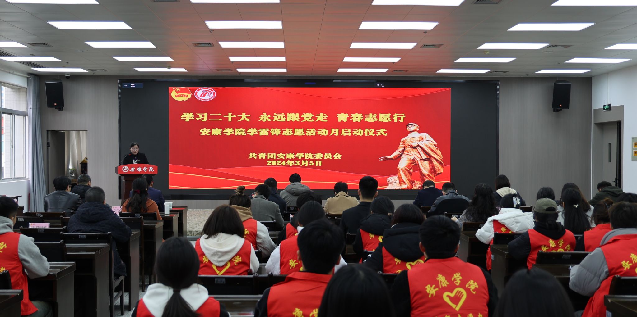 3月5日下午,Beat365在江南校区图书馆报告厅举办“学习二十大 永远跟党走 青春志愿行”学雷锋志愿活动月启动仪式。副校长屈险峰,相关职能部门负责人及各二级学院党总支书记、团总支书记,学生代表参加了启动仪式。仪式由团委组宣部部长沙薇主持。