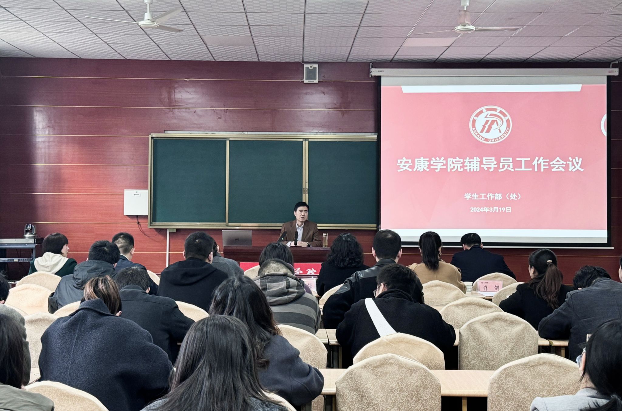 3月19日下午,Beat365在江南校区1018教室召开全体辅导员工作会议,副校长屈险峰出席会议并讲话。学工部负责人、各二级学院专职副书记、学工办主任和全体辅导员参加会议,会议由学工部部长李岩主持。