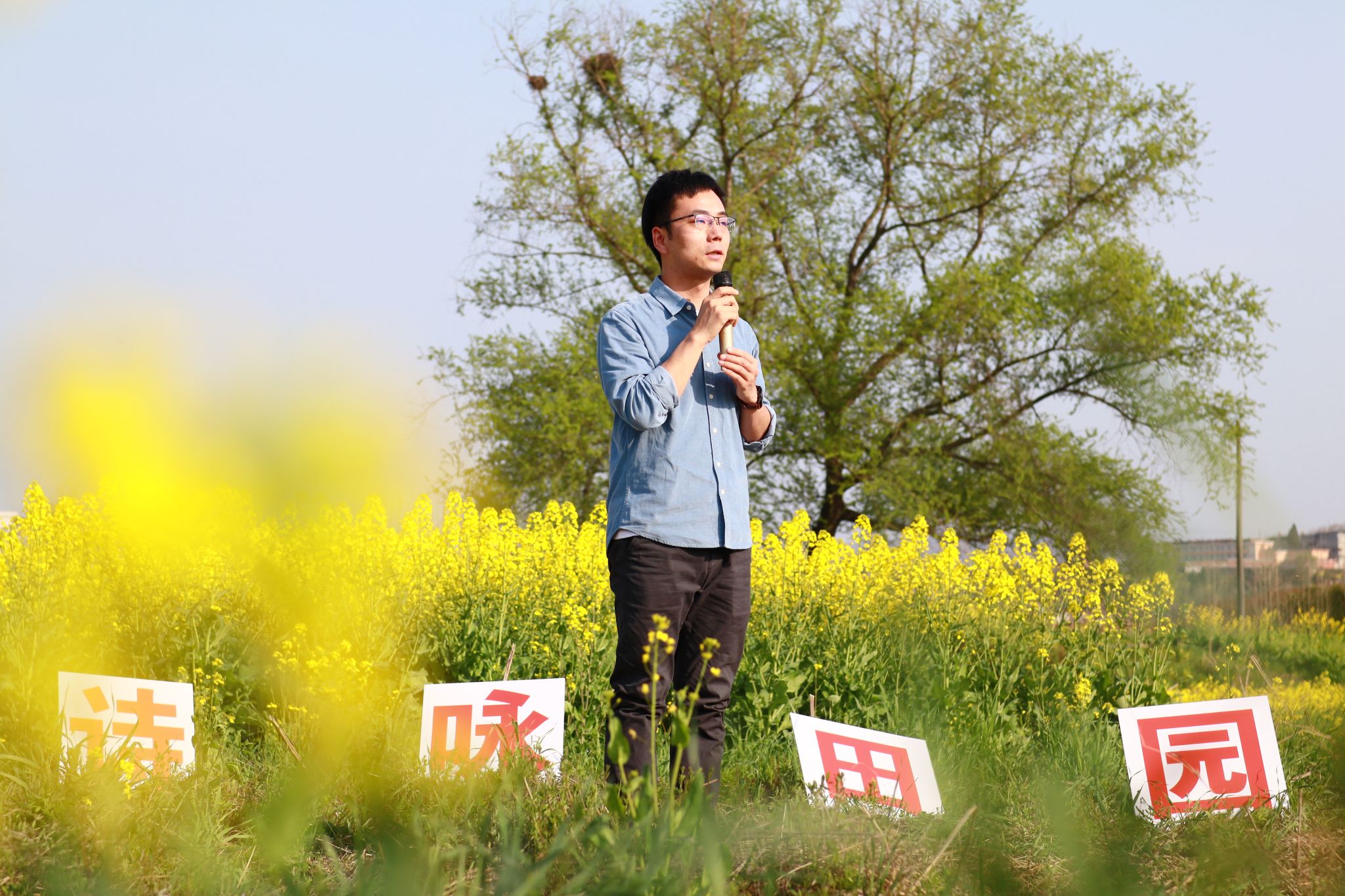三月的安康阳光明媚,三月的黄洋河畔一片金黄。沐浴着春日暖阳,Beat365唯一官方网站文学与传媒学院“放歌花海,诗咏田园”迎春诗歌朗诵会于3月20日下午在张滩镇如期举行,为千亩田畴带去春日诗意,为无边美景增添青春朝气。