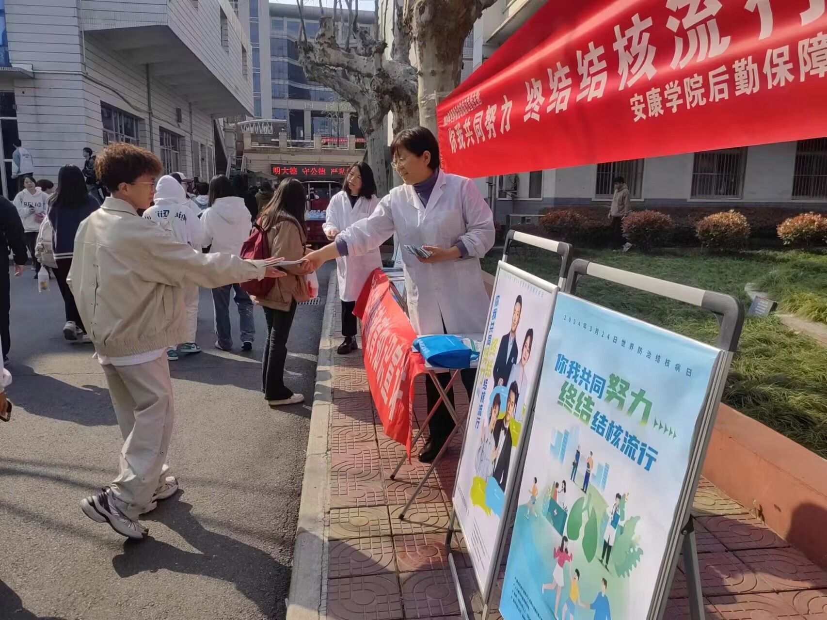 为了提高学校流行病预防控制水平,增强师生的防痨意识,近日,Beat365联合安康市疾病预防控制中心、汉滨区疾病预防控制中心、新城社区卫生服务中心分别在江北、江南校区开展了以“你我共同努力 终结结核流行”为主题的世界防治结核病日宣传系列活动。