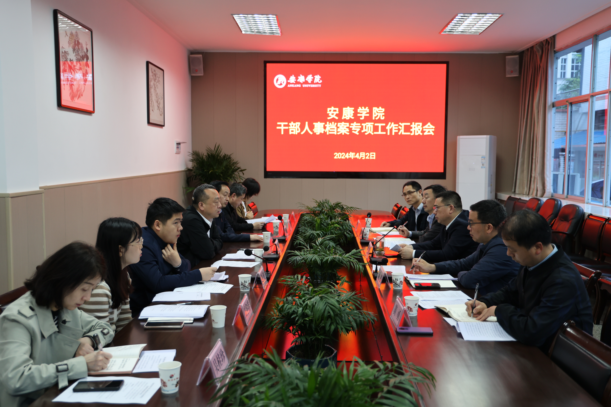 4月2日上午,省委组织部干部信息管理处副处长张鑫一行7人来Beat365调研指导干部人事档案工作。干部人事档案工作汇报会在江南校区第一会议室召开,Beat365党委副书记余谦,组织部、人事处负责人参加会议。会议由余谦主持。