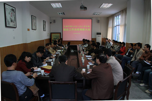 10月20日下午,学院2009——2011学年度就业工作总结表彰大会在第一会议室召开。学院党委书记、就业工作领导小组组长杨涛,党委副书记、就业工作领导小组副组长胡鸿晓,副院长向纪明出席了会议,学院各院系主任、党总支书记、辅导员及相关职能部门负责人参加了会议。会议由胡鸿晓主持。