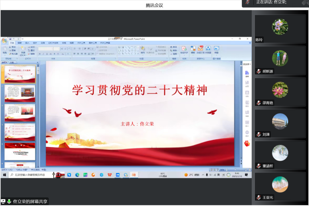 副院长佟立荣以《学习贯彻党的二十大精神》为主题,领学了的党的二十大精神,并强调老师们要牢记为党育人、为国育才,勇担教育强国使命,不断提升人才培养质量,知难而进、迎难而上,敢于斗争、善于攻坚,自觉肩负起新时代新征程的使命任务,不断开创各项事业发展新局面。
