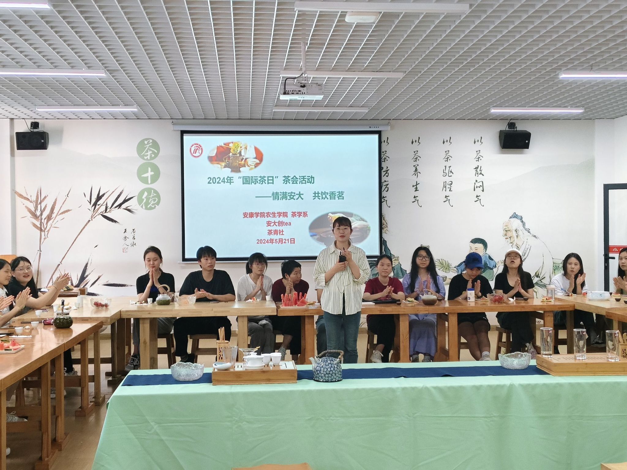 2024年5月21日是第五个“国际茶日”,为弘扬茶文化,引导大学生继承和发扬优秀文化传统,丰富第二课堂,Beat365农生学院茶学系、安大创tea、茶青社联合举办“情满校园 共饮香茗”茶会活动。茶学专业部分师生和其他二级学院茶文化爱好者参加了活动。