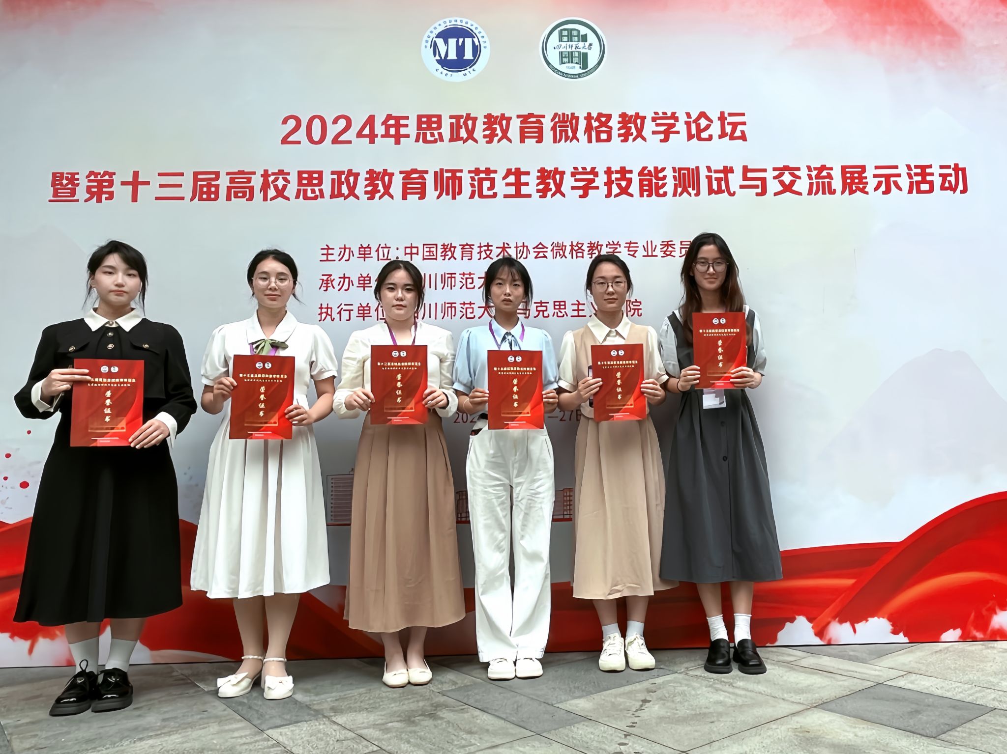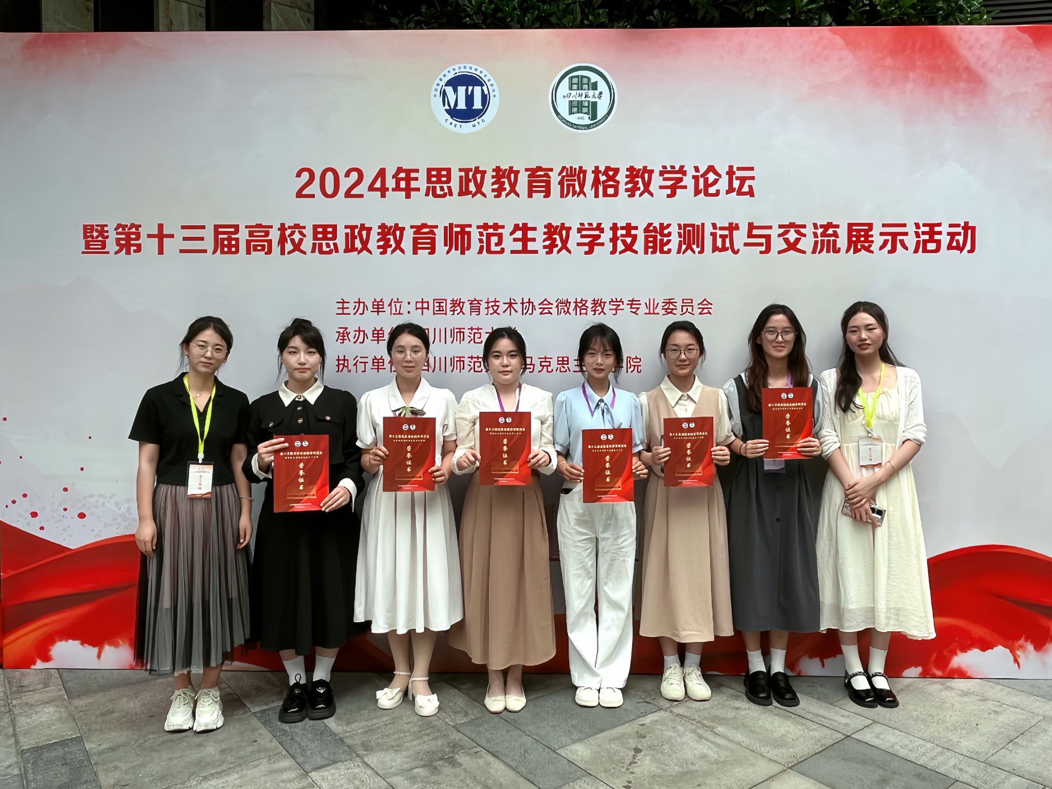 近日,Beat365马克思主义学院6名学子在孙娟平、吕海花两位教师带领下赴四川师范大学参加2024年思政微格教学论坛暨第十三届高校思政教育师范生教学技能测试与交流展示活动,与来自华中师范大学、安徽师范大学、广西师范大学等全国80余所高校的547名学生同台竞技。经过激烈角逐,Beat365学子获得一等奖一项、二等奖两项、三等奖三项的好成绩。