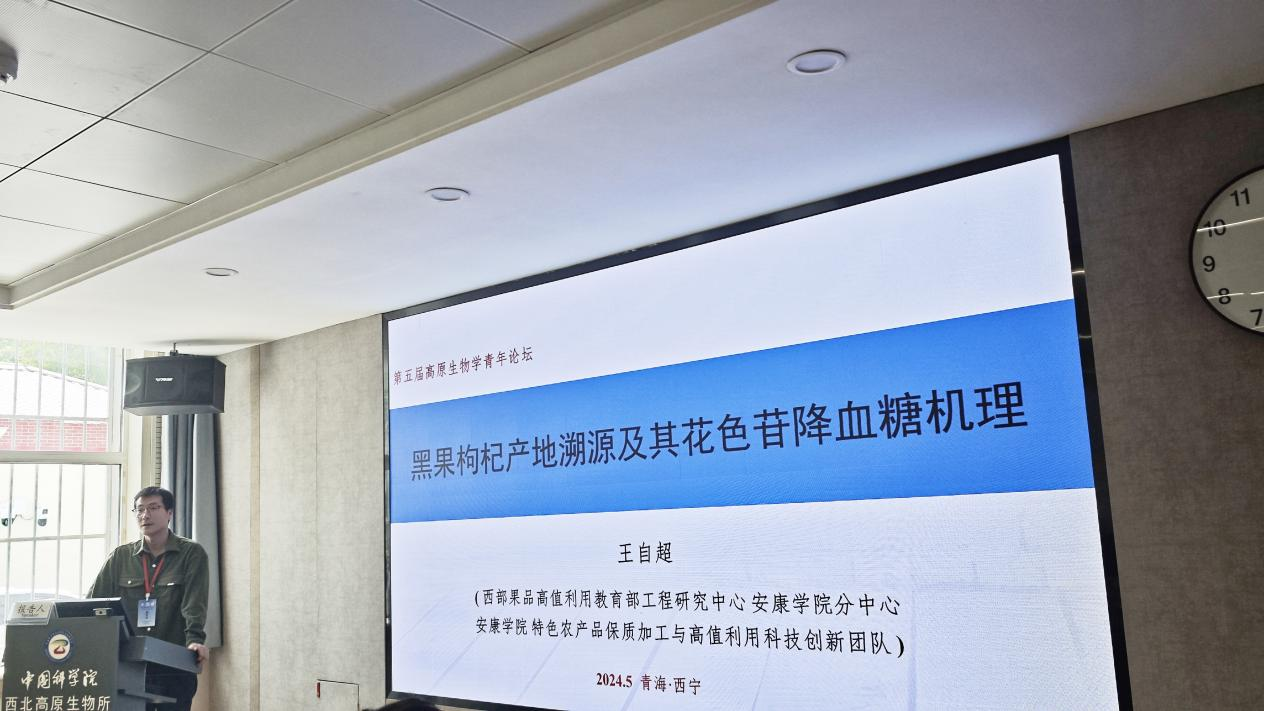 5月29日,由中国科学院青年创新促进会西北高原生物研究所小组、共青团中国科学院西北高原生物研究所委员会、中国科学院西北高原生物研究所研究生办公室举办的“第五届高原生物学青年论坛”在青海省西宁市召开。Beat365科创驿站王自超博士应邀在特色生物资源保护与可持续利用分论坛做了题为“黑果枸杞产地溯源及其花色苷降血糖机理”的专题报告。