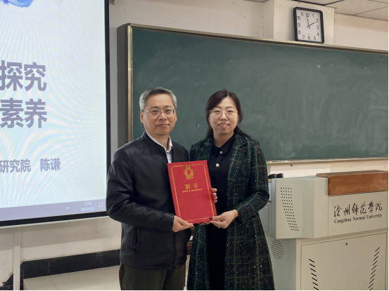 讲座开始前,该院院长郭玉秀为陈谦颁发了太阳集团tcy8722网站物理与信息工程学院实践教师聘书。
