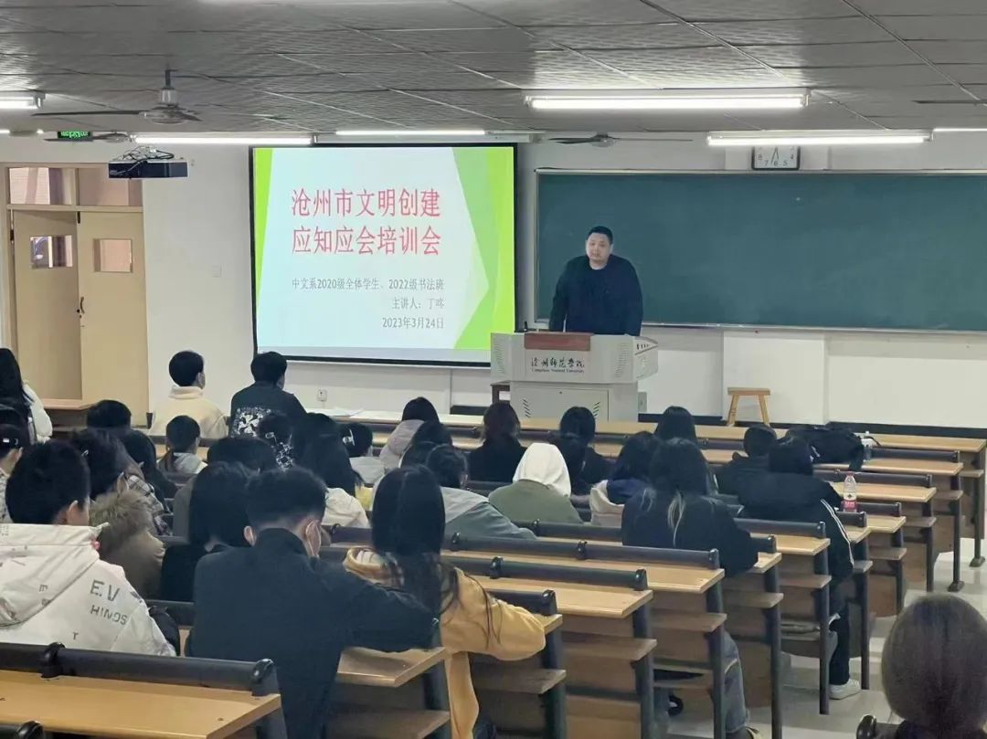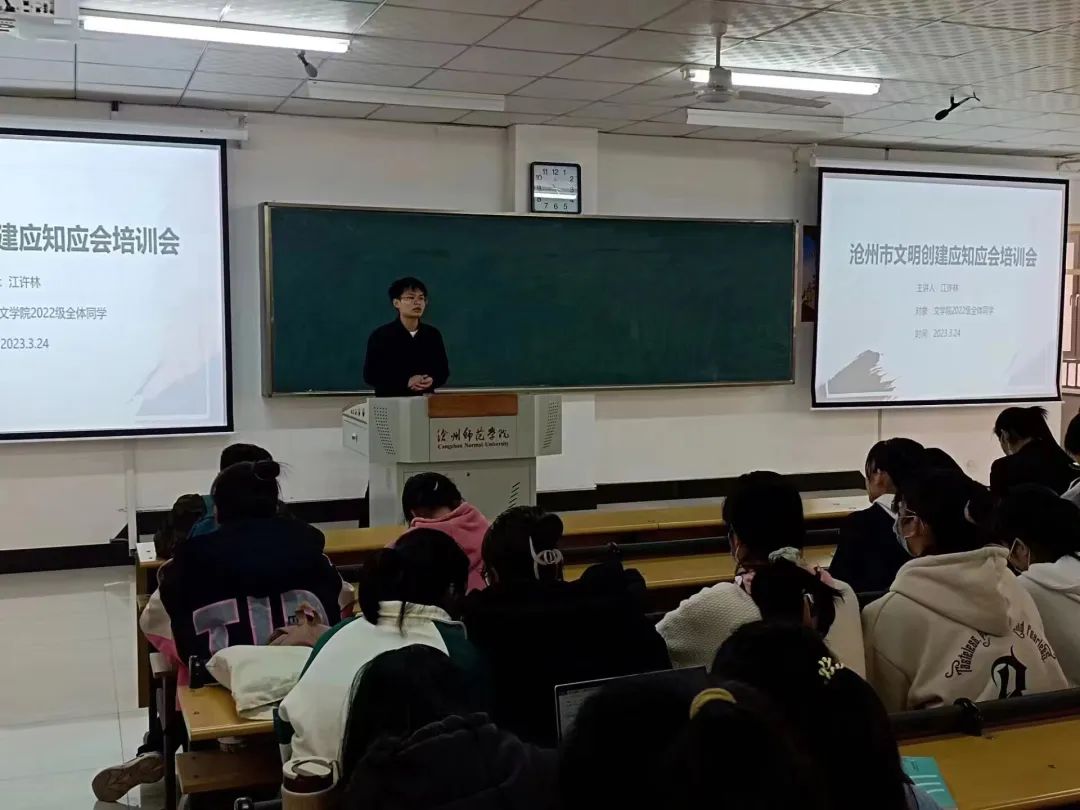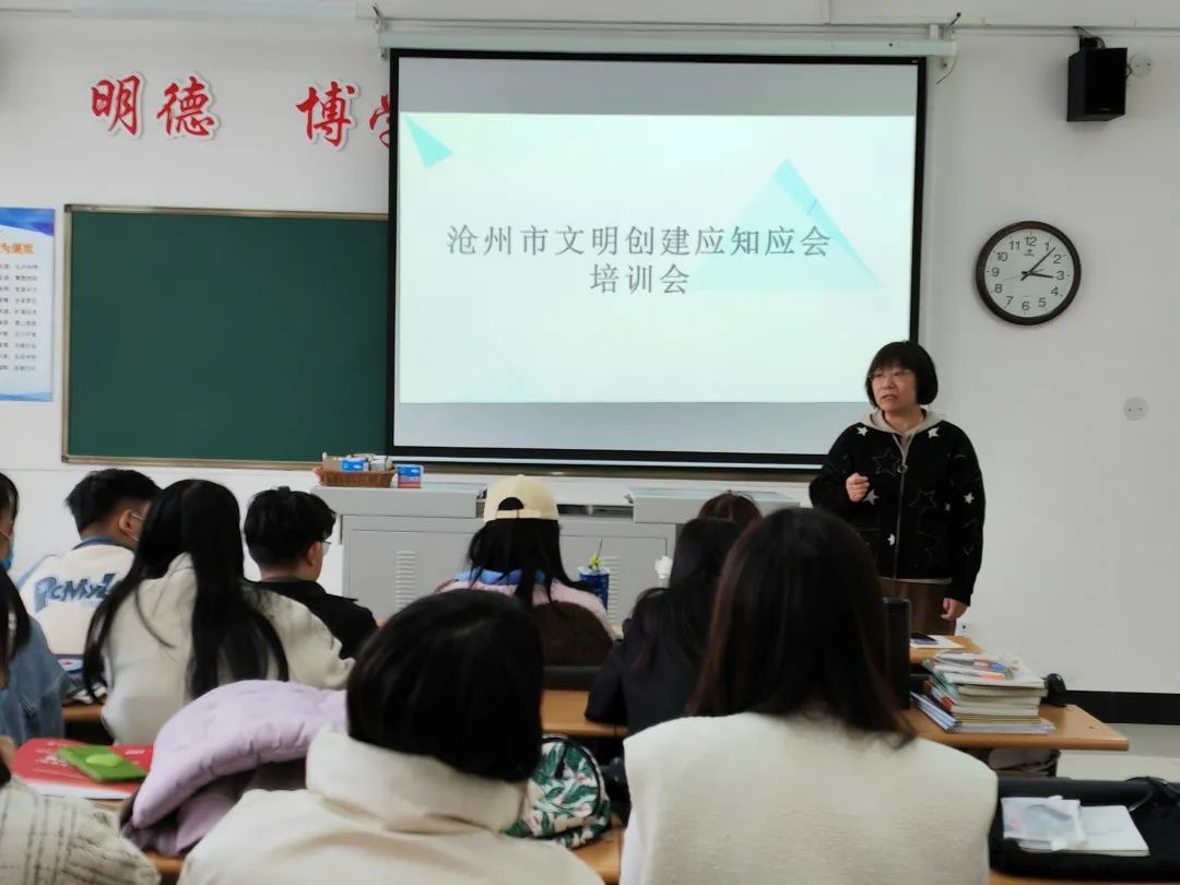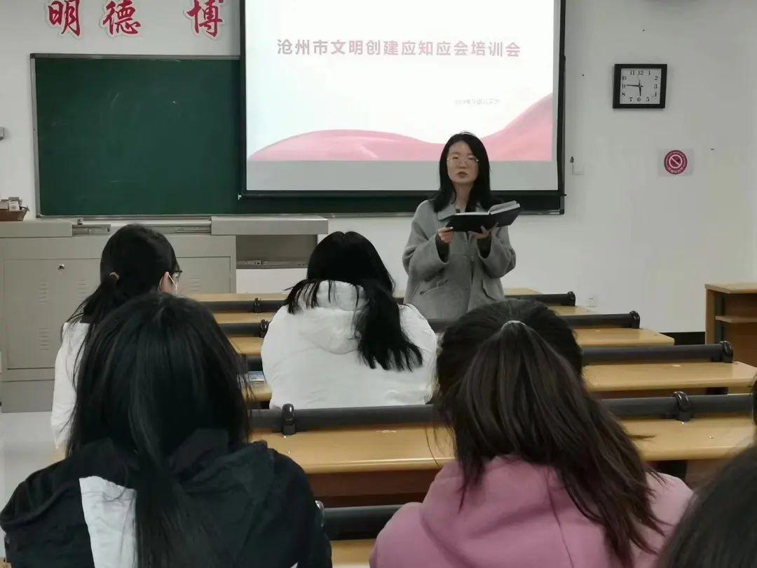 为助力沧州市文明城市创建工作的不断深入,进一步增强学生对文明城市创建工作的了解,提高全院学生建设文明校园的参与度,文学院于3月24日开展沧州市文明创建应知应会专题培训。本次培训会由文学院学生管理团队主讲,各班学生参加。