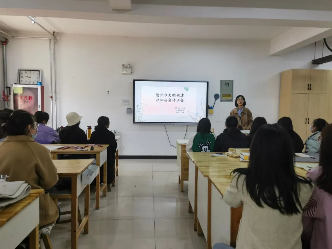 会上,领导老师向同学们详细讲解了《沧州市创建全国文明城市应知应会》与《文明小常识》的主要内容,包括社会主义核心价值观、全国文明城市的含义以及文明城市创建过程中对于市民的相关要求等,老师们强调大家应自觉贯彻落实,从点滴做起,争做创建文明城市的宣传者、践行者、引领者,共同打造文明和谐校园。