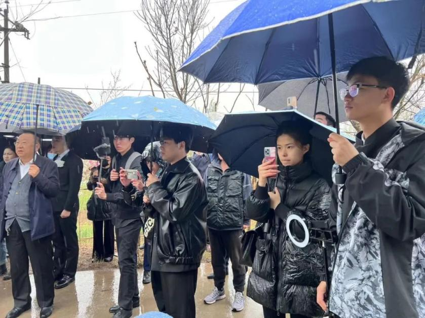 清明时节思故人,跟随齐越传媒学院师生脚步,《新媒体直播》课程的同学来到沧县姜庄子村直播齐越墓祭扫活动。