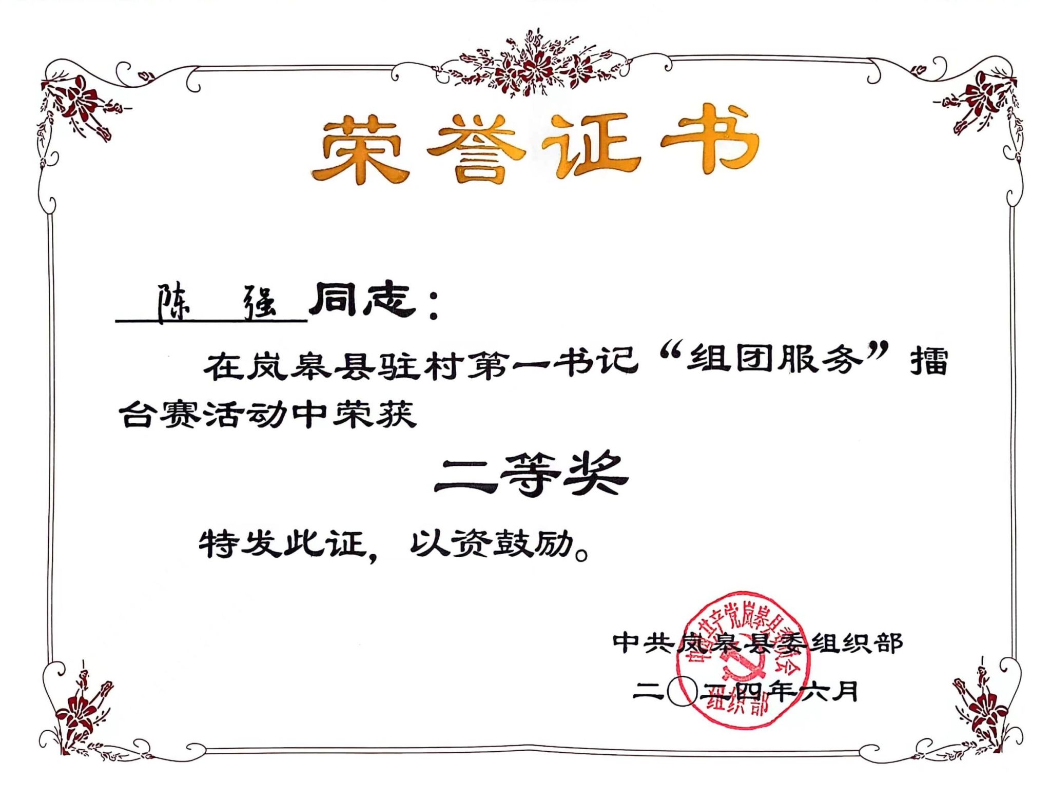 近日,岚皋县举办驻村第一书记“组团服务”擂台赛,Beat365派驻民主镇新喜村第一书记陈强荣获大赛二等奖。