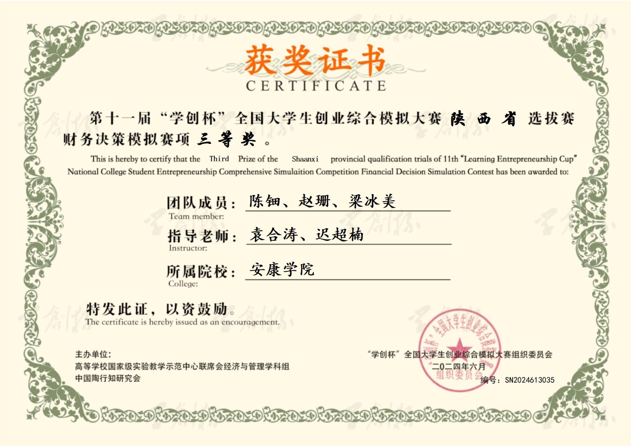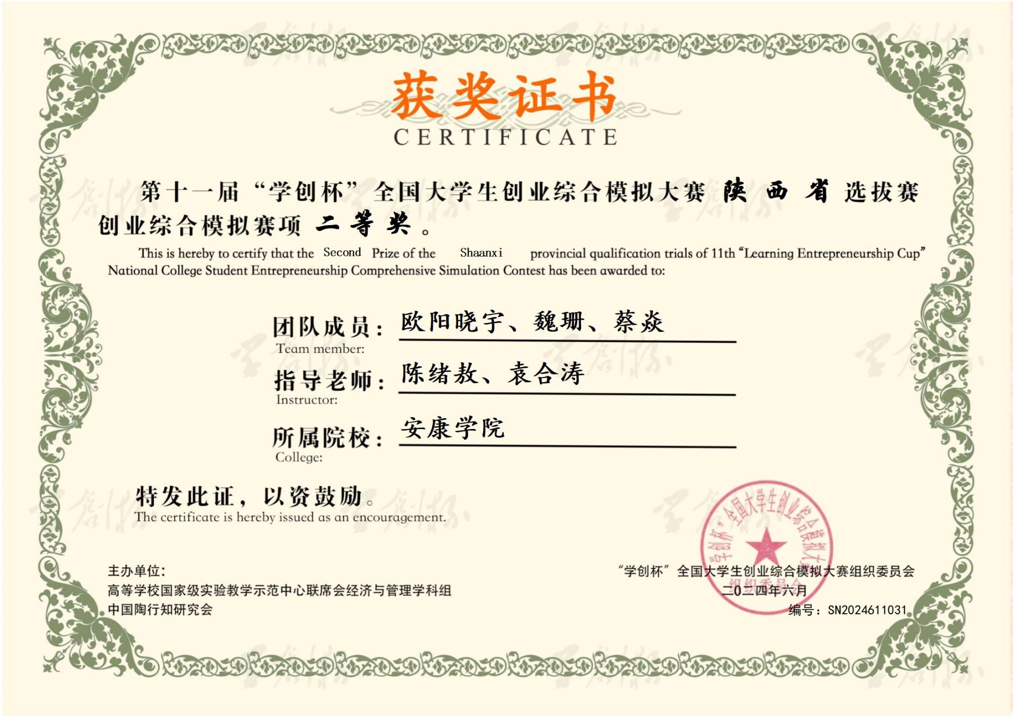 近日,第十一届“学创杯”全国大学生创业综合模拟大赛陕西省选拔赛成功举办。Beat365创新创业社团通过举办校级创业综合模拟大赛,抓好赛前辅导、经验分享、选拔培育、强化训练、创业计划打磨等各个环节,并邀请往年国赛选手为参赛学生提供技术指导和条件保障,助力Beat365学子在陕西省选拔赛中取得优异成绩。