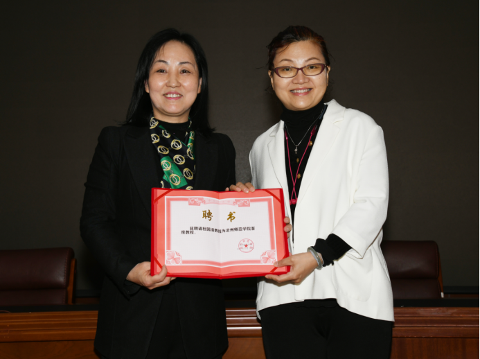 讲座伊始,张海燕为杜国清教授颁发了客座教授聘书,并表示以后的客座教授讲座会定期举办,朝着常态化、长效化方向发展。杜教授在与教师交流过程中分享了她的专业教学心得:首先要引导学生关注国家发展战略,从宏观层面形成对广告发展的认知;在实际教学中,要为学生创造更多实践、实训的机会,从而加深对广告及品牌价值的理解;最重要的是要给学生种下一颗学习的种子,面对瞬息万变的行业环境,师生都抱有学习的热情,不断进行知识更新和迭代,最终真正用专业服务社会经济文化的发展。