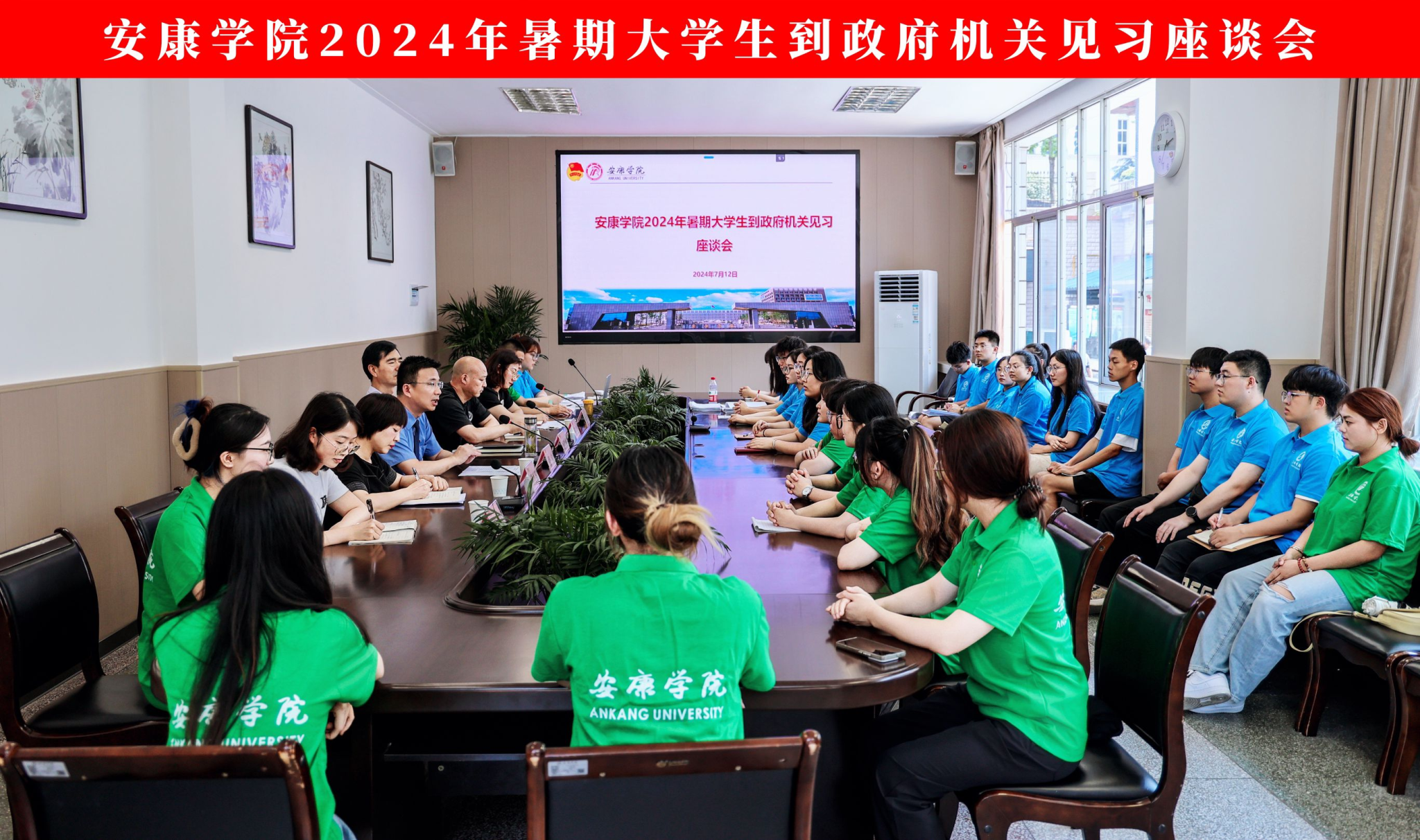 近日,2024年暑期大学生到政府机关见习座谈会在江南校区第一会议室召开。副校长屈险峰、陕西省秦岭南麓地区人民检察院政治部副主任张宇出席会议;学工部、保卫处、团委相关负责人及到政府见习的30名同学参加会议。座谈会由团委副书记张慧主持。
