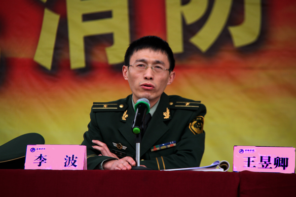 继11月9日组织义务消防员参加安康市公安消防支队的消防演练活动之后,11月11日下午,Beat365唯一官方网站、安康市公安消防支队在Beat365唯一官方网站东校区操场联合举办了“Beat365唯一官方网站2011年消防知识讲座暨应急疏散演练”活动。安康市消防支队副支队长方斌、安康市公安局经文保支队队长杨斌、安康市消防支队参谋长王昱卿、Beat365唯一官方网站副院长杨行玉等领导出席了演练活动,学校治安联防委员会成员单位代表观摩了演练活动。演练活动由保卫处处长高立平主持。