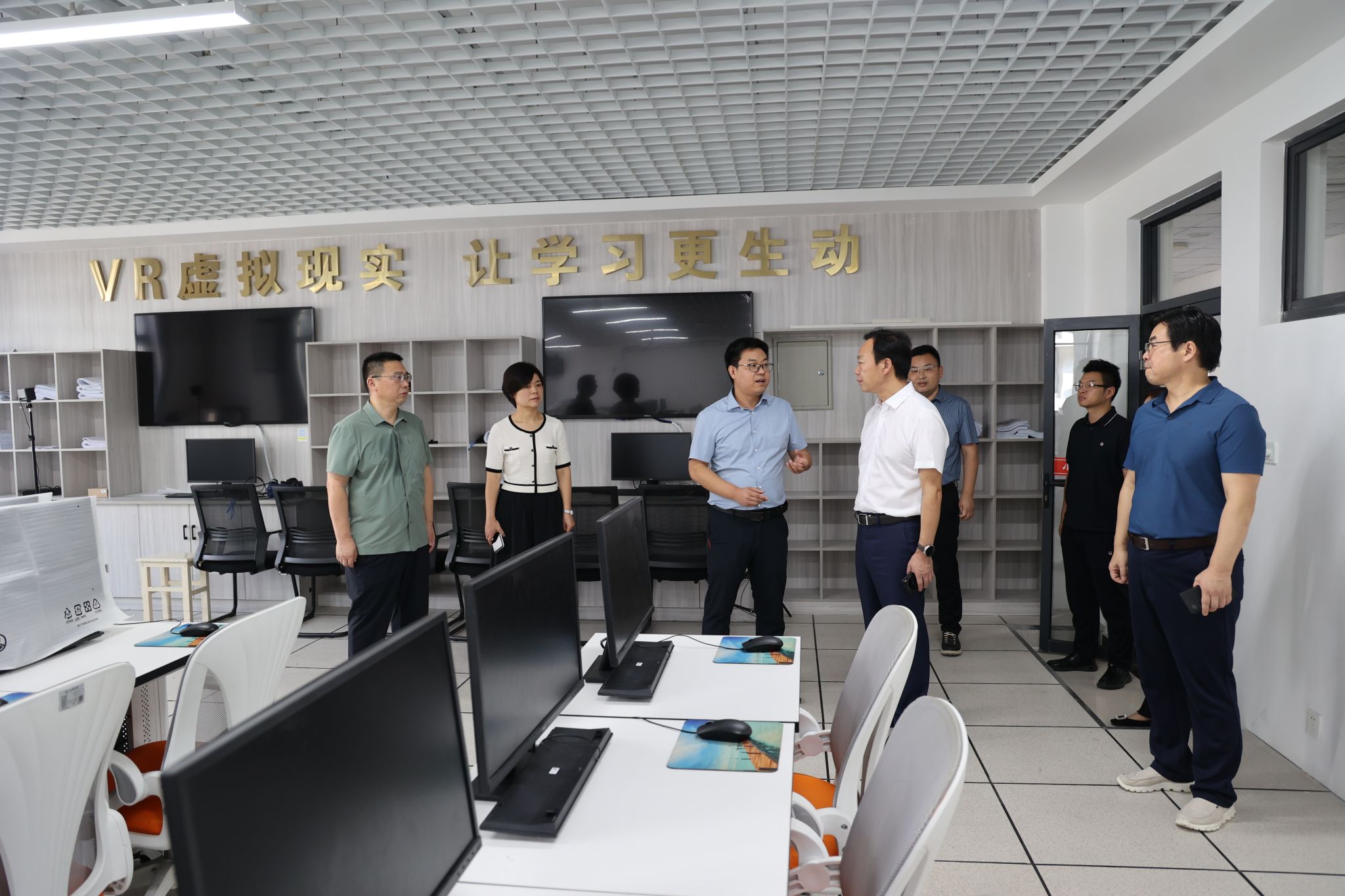 常州大学产教融合研究院院长王文华、常州大学艺术学院院长贾韬、常州万川职业技能培训学校副校长刘向萍、江苏城建校建筑规划设计院有限公司副院长左丽萍一同来Beat365交流考察。