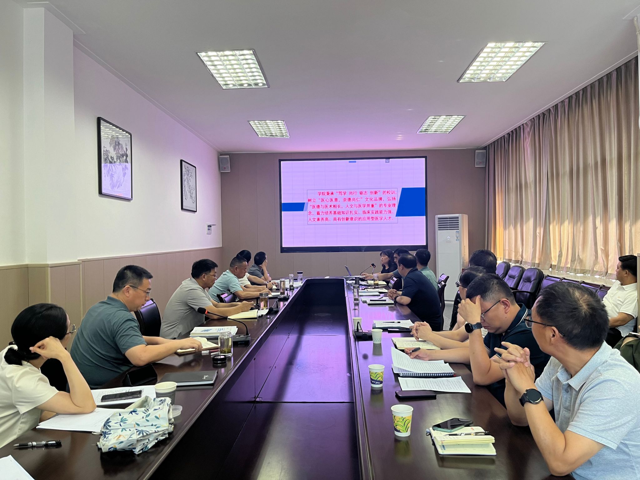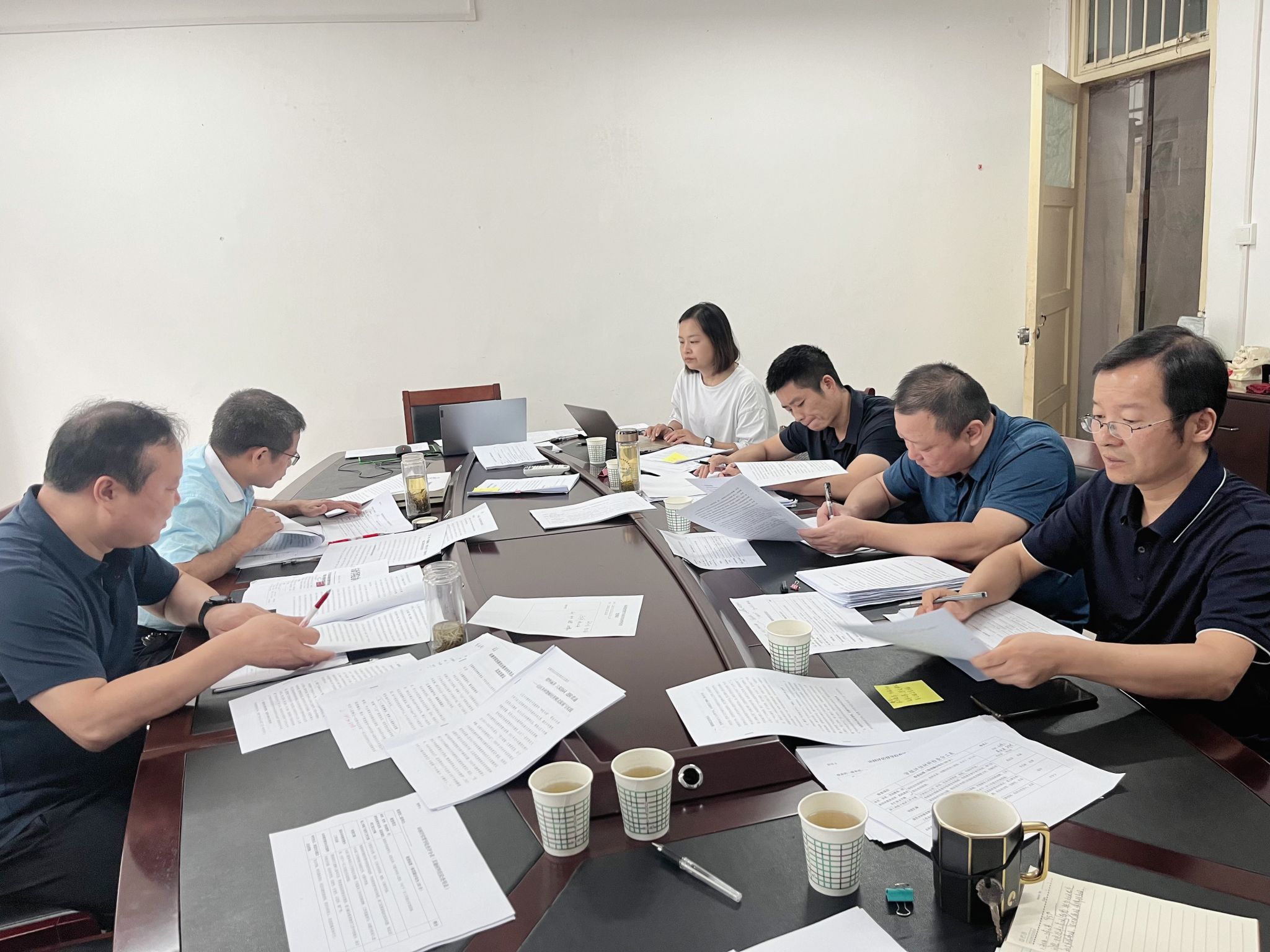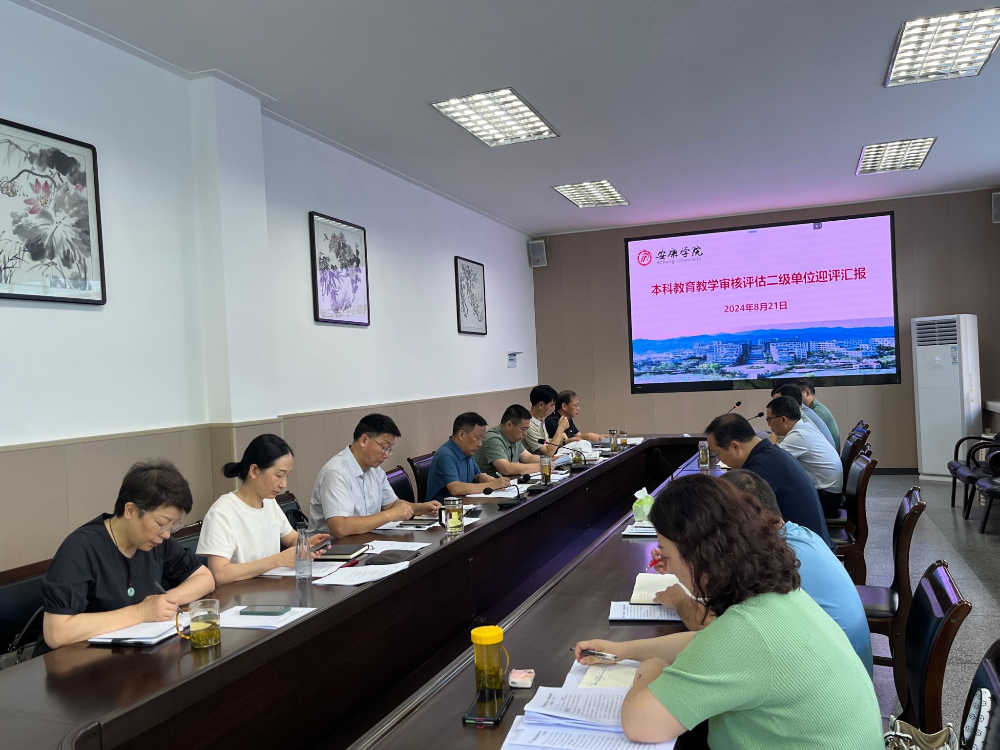 迎评汇报组听取职能部门汇报 |