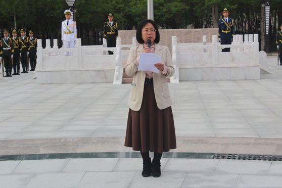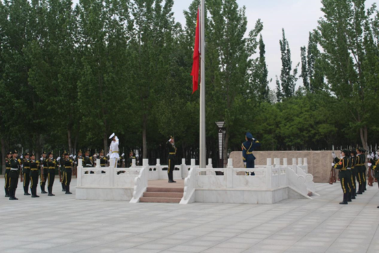 沐着朝阳,踏着歌声,国旗队的旗手们朝气蓬勃、英姿飒爽,迈着整齐划一的步伐护卫鲜艳的五星红旗走向升旗台。随着豪壮的《义勇军进行曲》响起,鲜艳的五星红旗冉冉升起,迎风招展,鲜艳夺目。在场人员精神饱满,庄严肃立,齐唱国歌并面向五星红旗行注目礼,向国旗表达崇高的敬意。