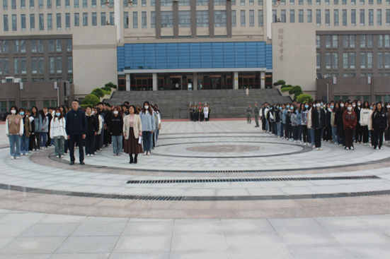 4月24日早7点,经济管理学院在学校图书馆前举行升旗仪式。经济管理学院党总支书记陈瑞坤在国旗下讲话,该院2022级全体学生及相关辅导员参加。