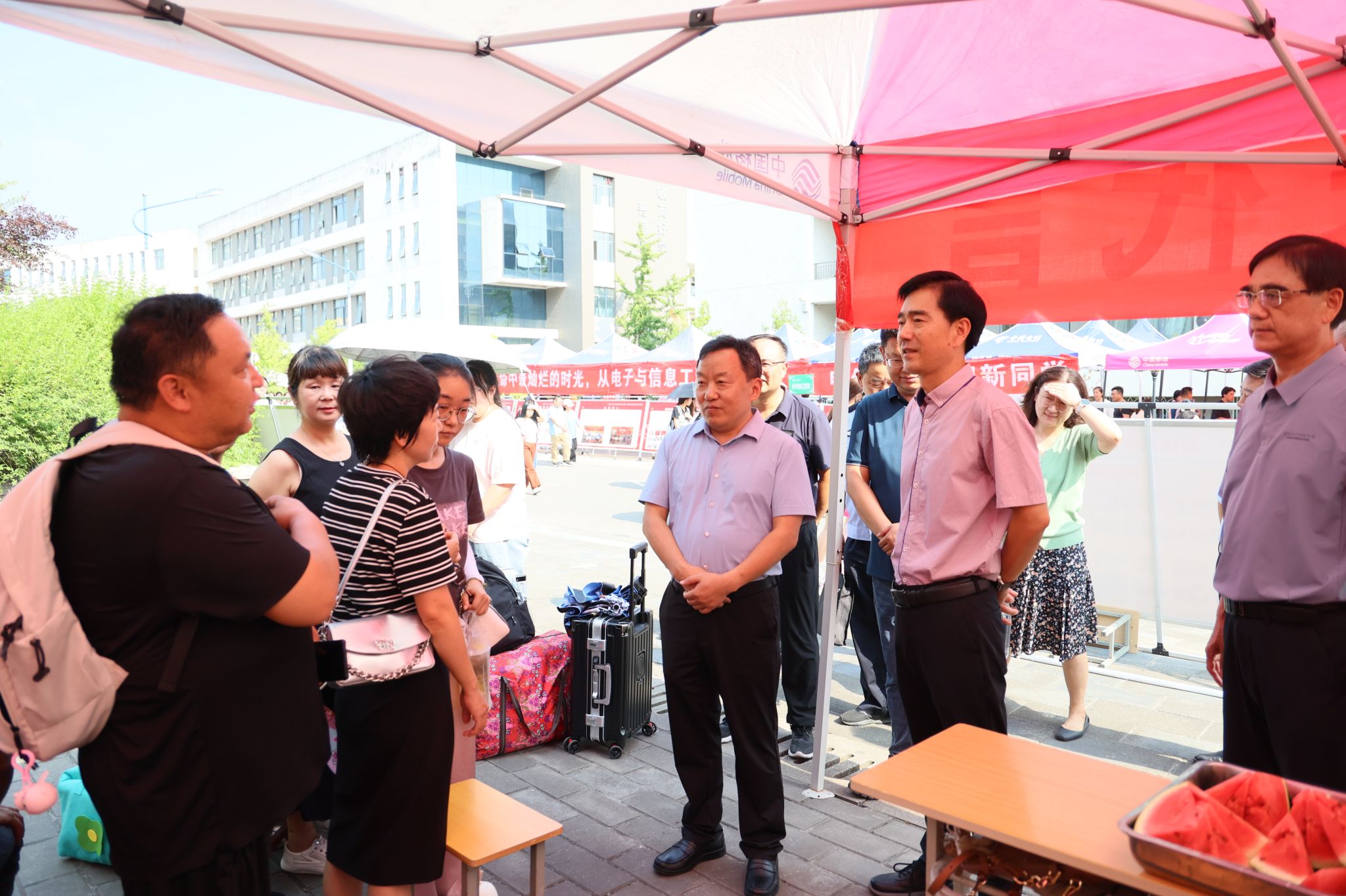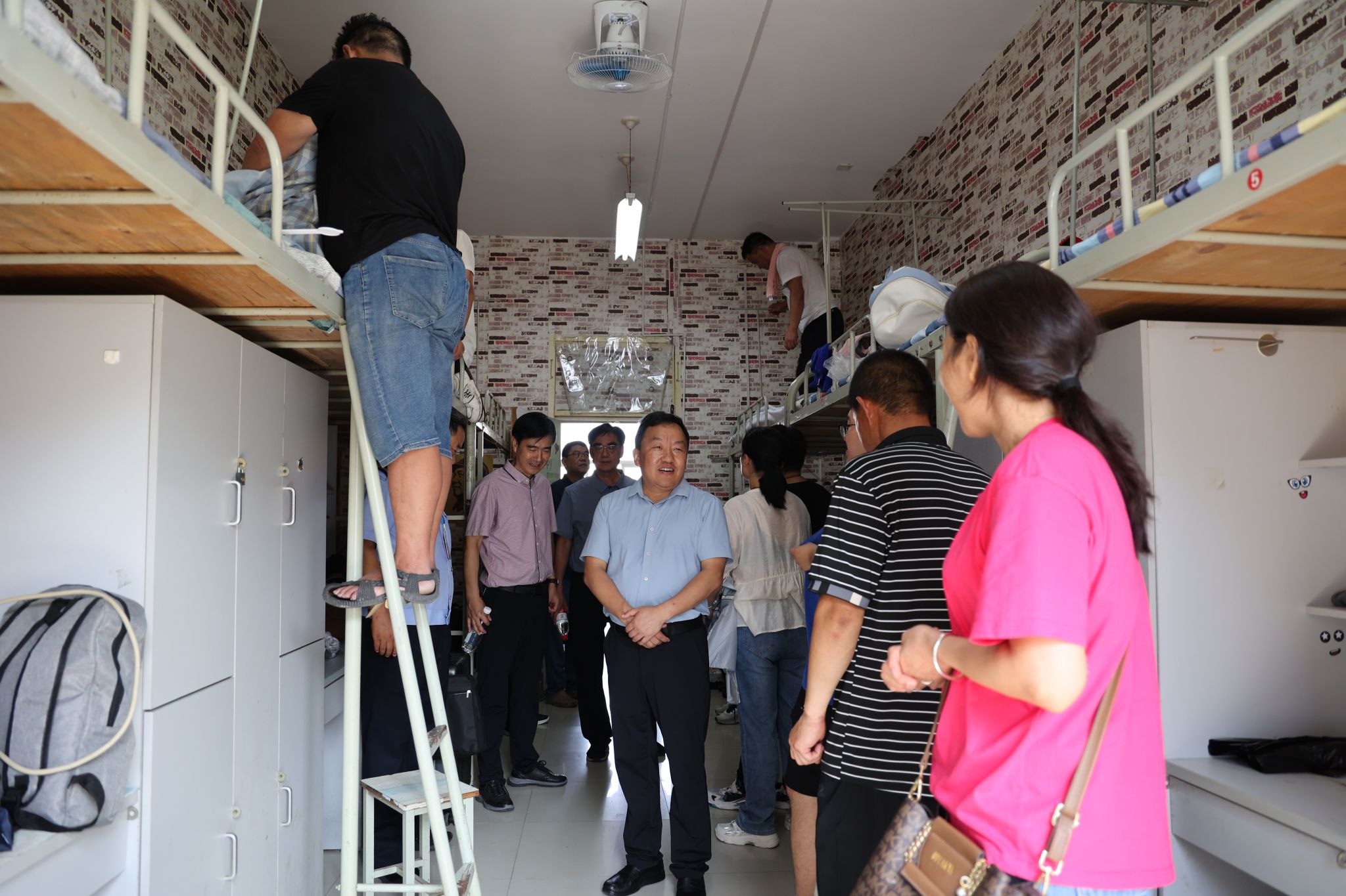 检查组一行深入迎新通道、二级学院迎新点、宿舍、食堂等重点区域和场所,重点检查了迎新工作点布置、宣传氛围营造、校园安全和交通疏导等工作,听取了相关单位负责人关于迎新的工作汇报,并从校园安全、人文关怀等方面做出了具体要求。