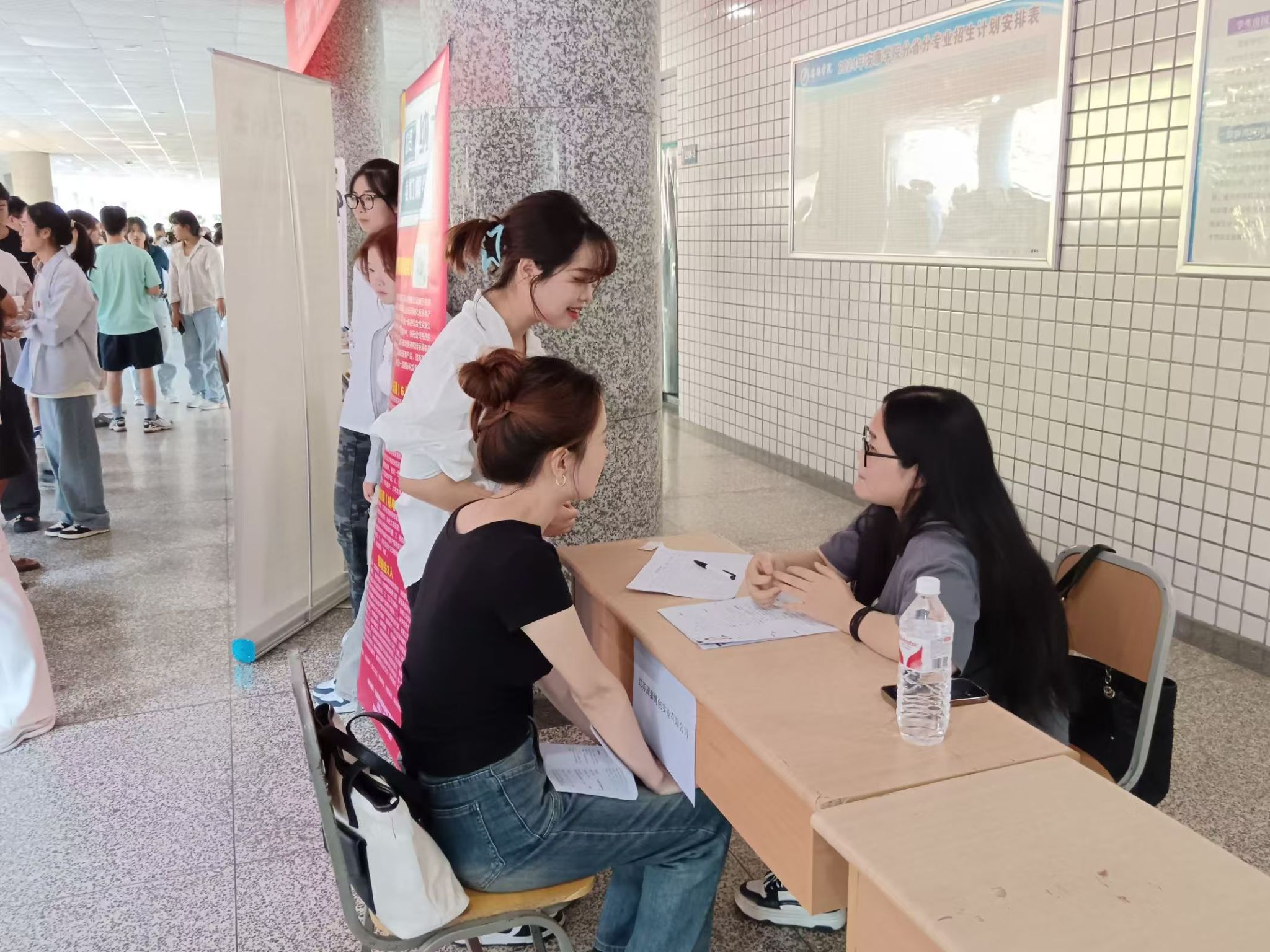此次张家港专场招聘会共有15家优质企业,岗位涉及化学化工、环境生态、电子信息、商务英语、市场营销等多个学科专业领域,提供优质岗位300余个。招聘会吸引了1000余名2025届毕业生现场咨询。毕业生积极向招聘单位了解岗位需求、薪资福利、发展前景等情况。参会企业通过海报、宣传册吸引学生了解企业概况、企业信息等,并现场介绍企业用人需求,耐心为到场学生答疑解惑,招聘会现场秩序井然、气氛热烈。