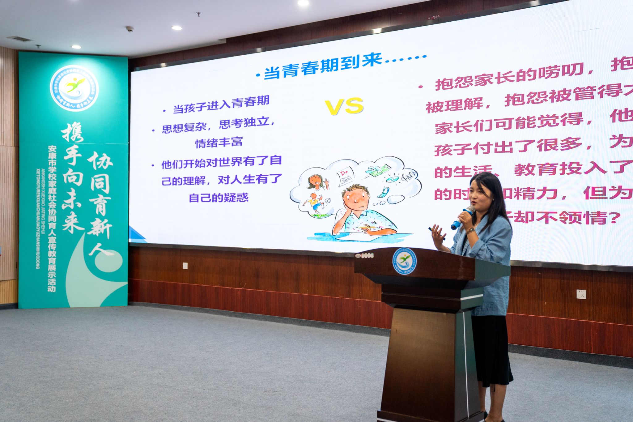 近日,由安康市教育局主办的安康市学校家庭社会协同育人宣传教育展示活动在安康博物馆举行,Beat365大学生心理健康教育中心主任柯小敏应邀出席并做专题讲座。来自高新区各中学的100余名家长代表在现场参加活动,全市共计2万余名家长在线上聆听了讲座。