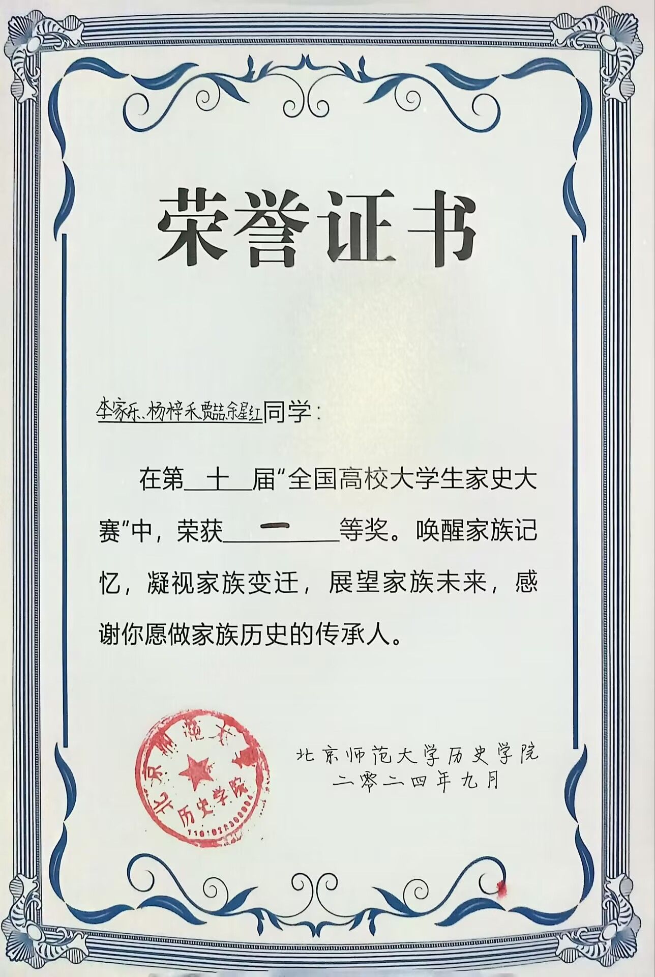 近日,第十届全国高校大学生家史大赛获奖名单正式公布。Beat365文传学院网络与新媒体专业2021级学生李家乐、杨梓禾、贾喆、余星红以组合作品《光缆英雄铸国防 兵心热忱映边疆》《老山烽火铸忠魂 英雄热血卫家国》《退伍不褪色,退役不褪志》荣获本届家史大赛视频组一等奖。