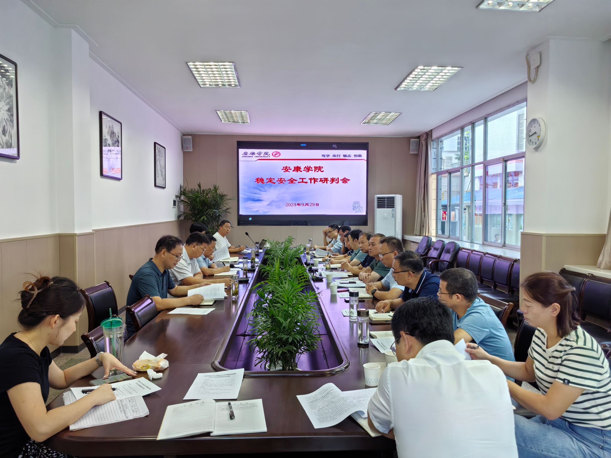 会议传达学习省委教育工委近期稳定安全相关文件精神,听取学校稳定安全工作领导小组成员单位近期稳定安全工作情况汇报,研判当前稳定安全形势,安排部署国庆假期安全工作。