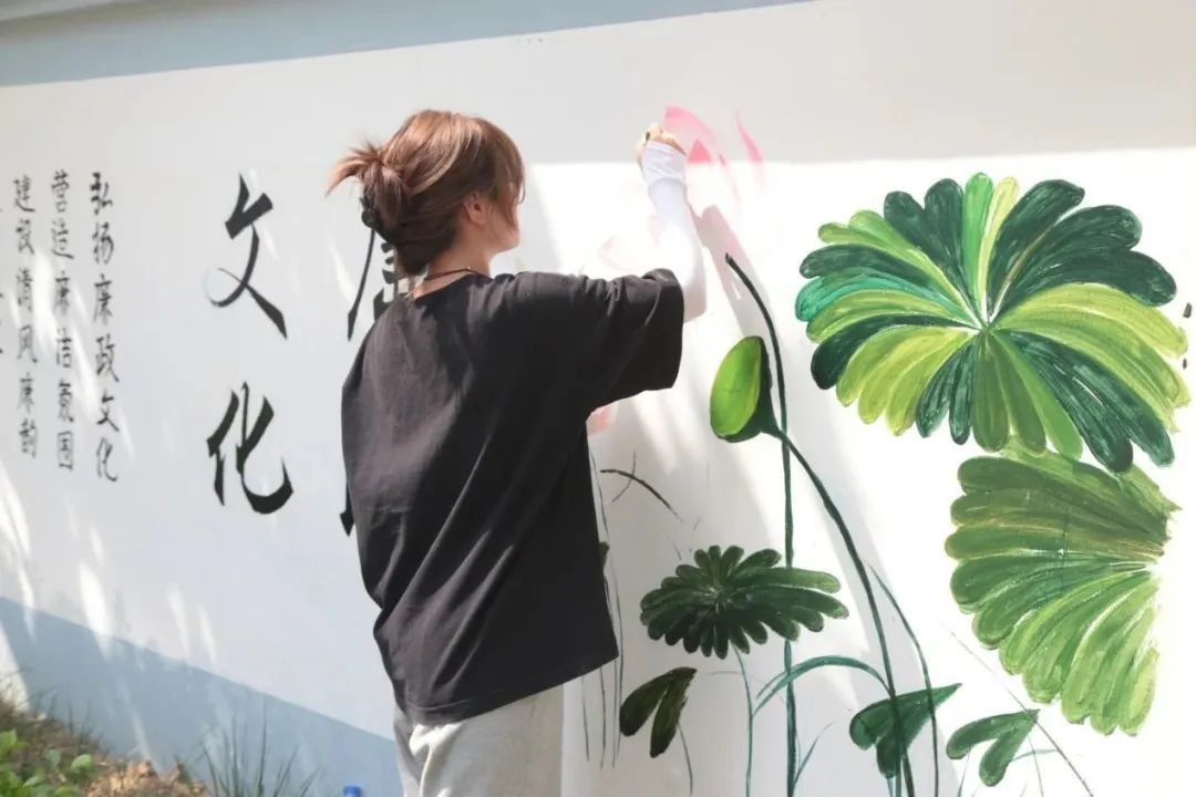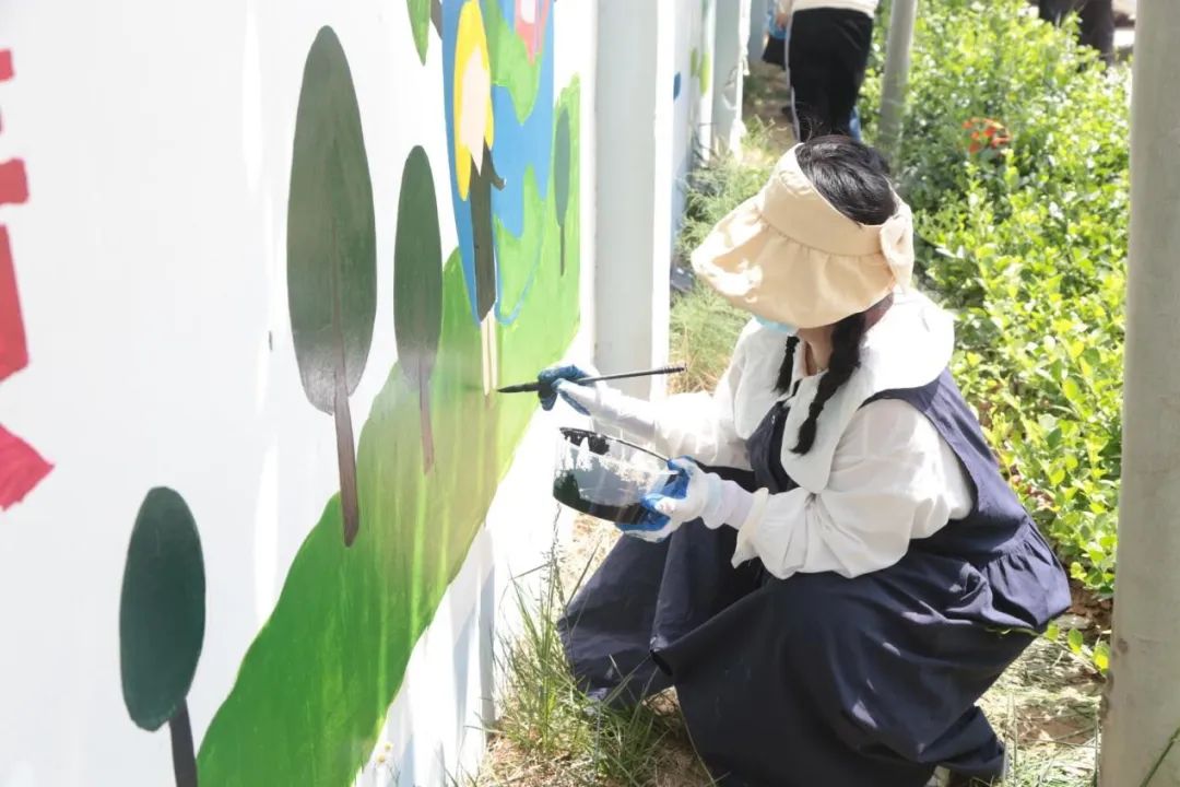 志愿者们不惧烈日骄阳,充分发挥丰富想象力和创造力创作出一幅幅栩栩如生、富有文化气息的墙画。