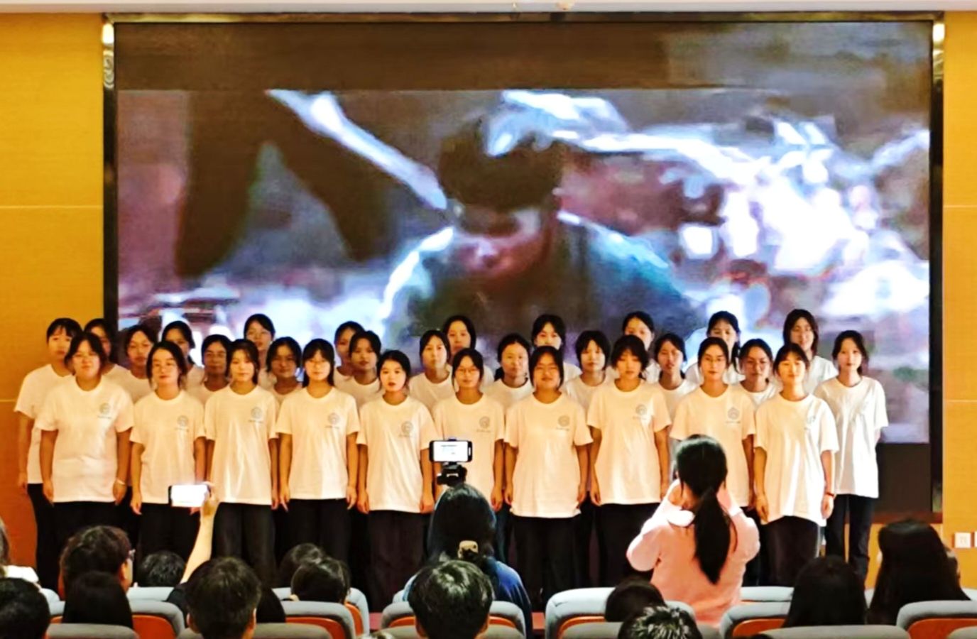 随后,该院2024级新生合唱团通过歌曲《有我》《我好像在哪里见过你》,以悠扬的旋律唱出新时代青年的心声;小品《上课请听讲》直击校园岁月,诙谐再现了课堂师生互动;合唱歌曲《特别的人》抒发了对同窗情谊的珍惜;2024级辅导员金粲璨精心填词演唱歌曲《New boy》,将祝福融入每一句歌词,鼓励新生不忘初心,勇敢追梦;党总支书记田静深情朗诵《致橡树》,歌颂至死不渝的深情,寄语学生们在困惑迷茫时能够激发出勇气和力量,将整场晚会推向了高潮;大会在合唱歌曲《遇见》中落下帷幕。