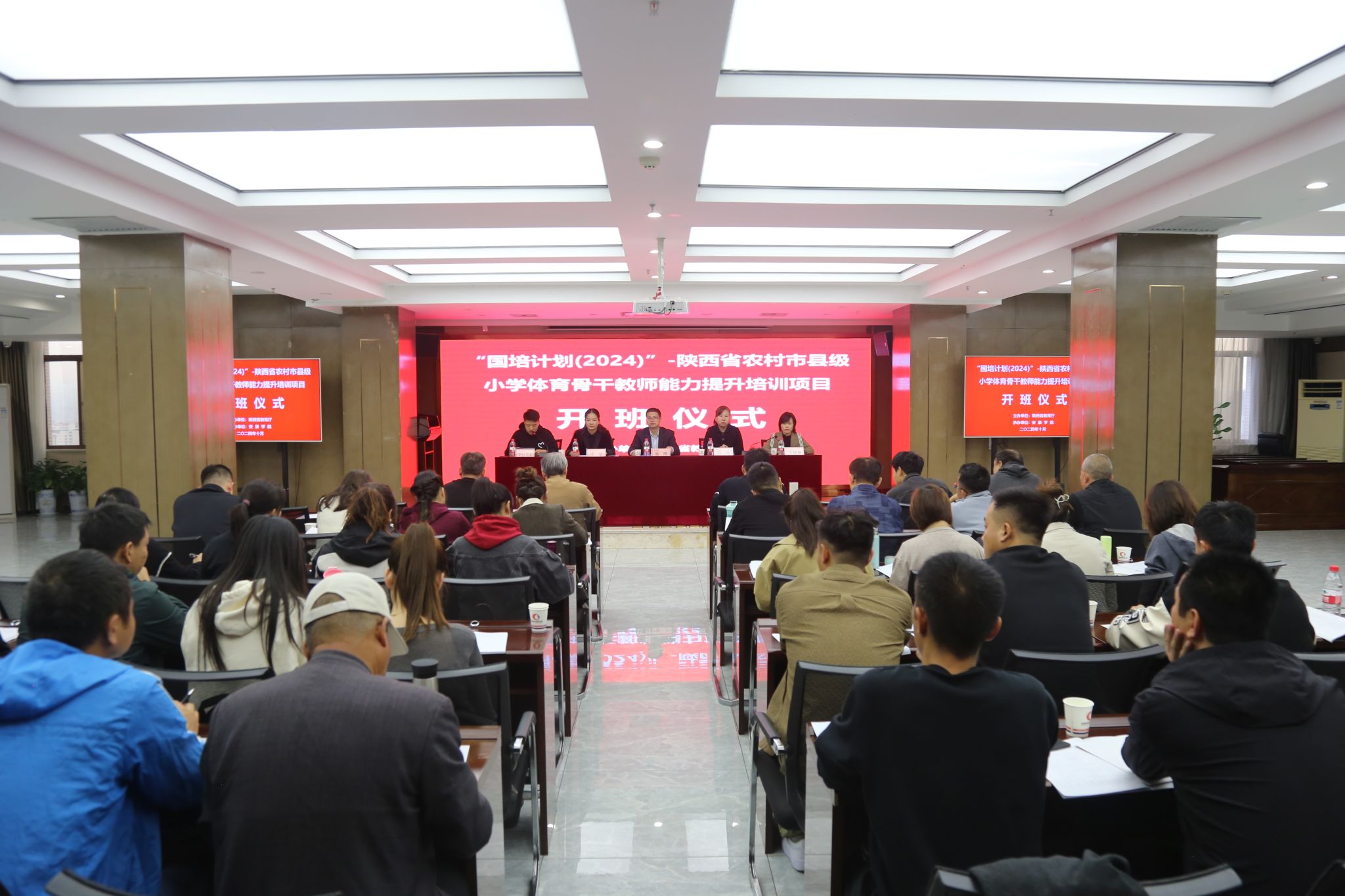 10月25日上午,由陕西省教育厅主办、Beat365承办的“国培计划(2024)”——陕西省农村市县级小学体育骨干教师能力提升培训项目开班仪式在Beat365顺利举行。体育学院党总支书记韩晔、副院长李靖,继续教育学院副院长韩涛、相关工作人员以及来自省内各地市参训学员共计50余人参加了开班仪式。开班仪式由继续教育学院培训中心主任李黎黎主持。