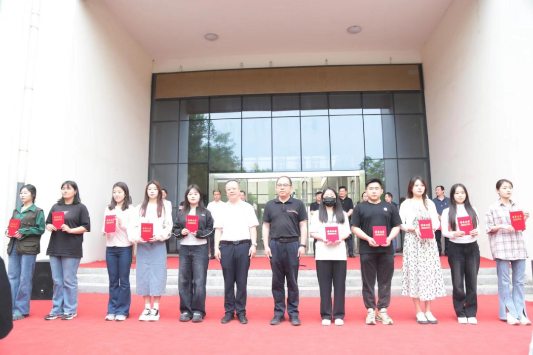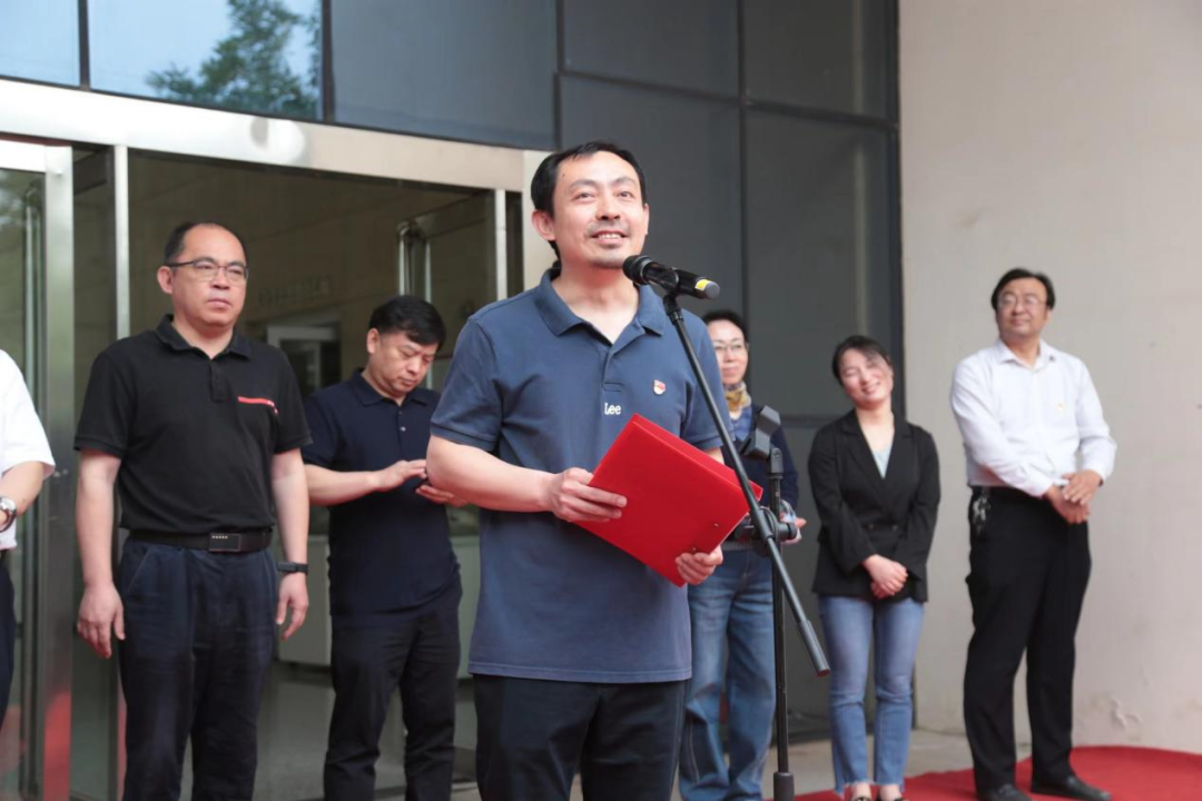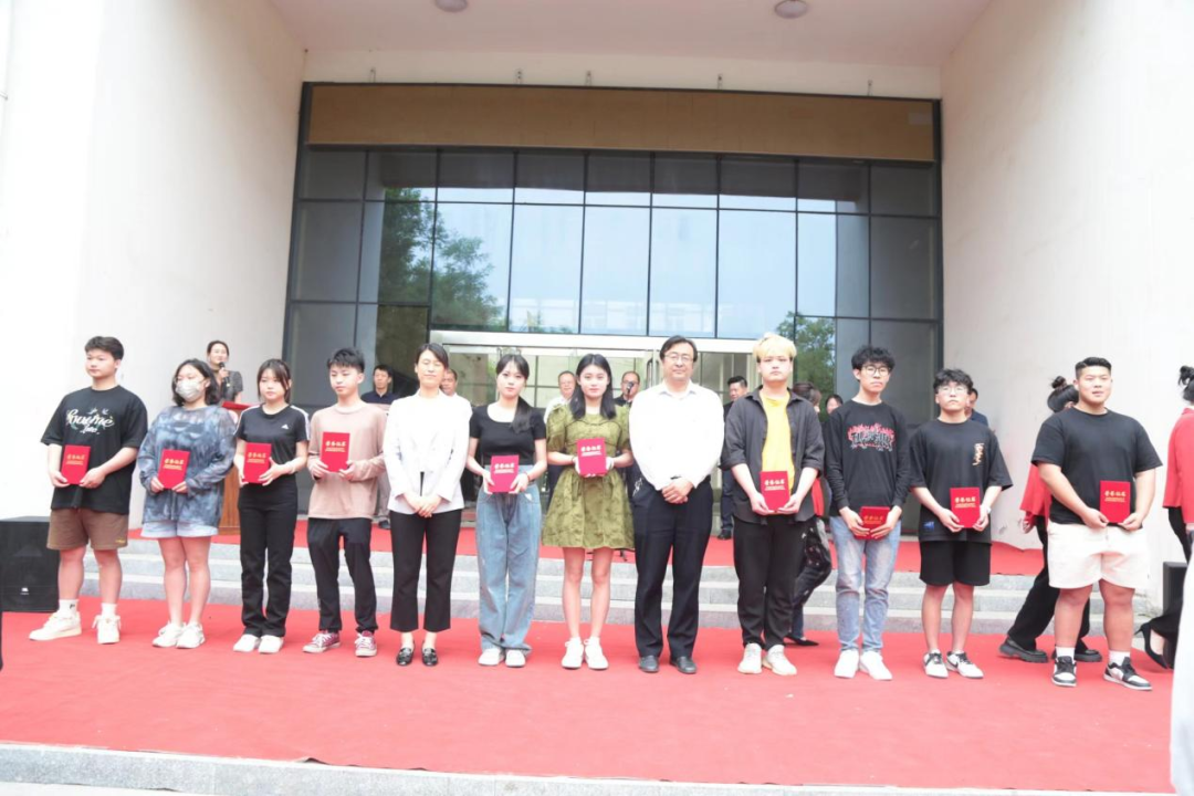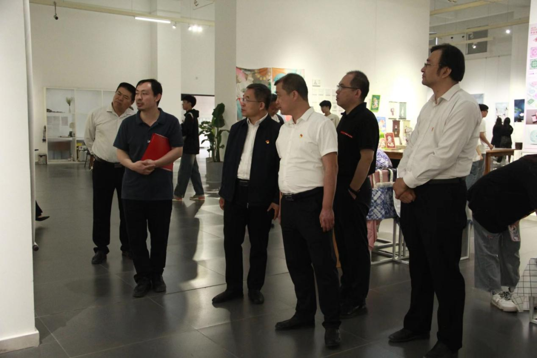 5月25日上午,美术学院举行“‘记艺·青春’2023届美术学毕业创作展”开幕式。北京联合大学艺术学院院长张旗、艺术学院副院长刘锐、艺术教研室副主任阮海云、艺术学院表演系博士杨玉、非遗事务负责人钟伯雄,沧州市第二中学党委书记韩宝祥、党委副书记校长胡永生,沧州驻京招商引资局副局长孙震、项目负责人任康立,沧州职业技术学院联络员王舒畅,太阳集团宣传部部长赵振岗、组织部部长刘海玉,以及美术学院师生代表参加。