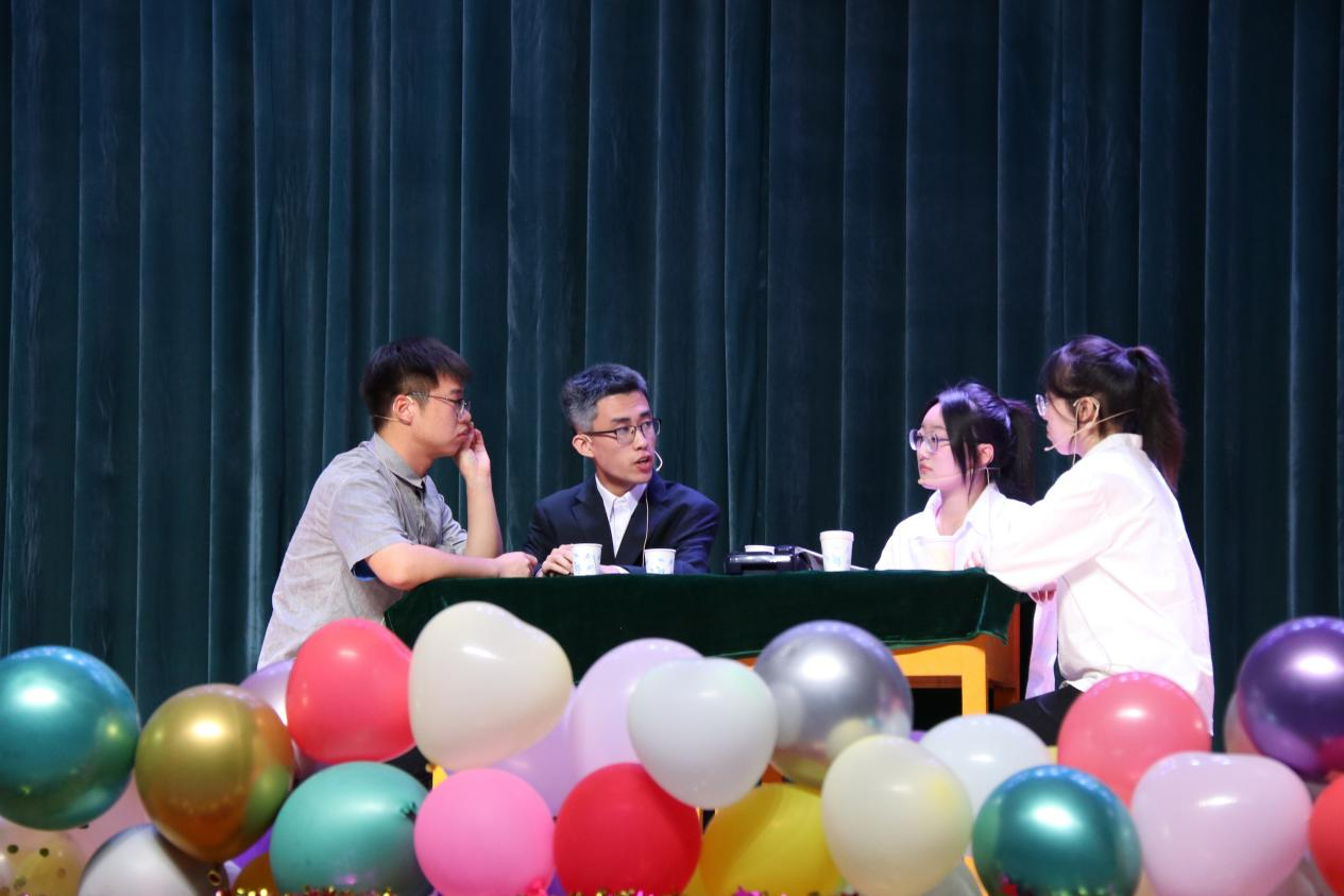 晚会由手势舞——《一起向未来》拉开帷幕,同学们展现出了青春的阳光活力。演讲《祖国的今天有我》慷慨激昂、淋漓尽致地表达对祖国深沉的爱。“七一勋章”获得者系列话剧表演是本次晚会的一大亮点:对非外交工作的坚守者、耕耘者刘贵今为了国事终身在外奔波,甘愿与妻子分离,多次在生与死的边缘挣扎;燃灯校长张桂梅为了让孩子们走出大山贡献毕生心血;第一书记黄文秀一心一意为人民服务,不畏牺牲,献身于国。同学们出色的表演再现了这些伟大人物的感人事迹,传递着榜样的力量。