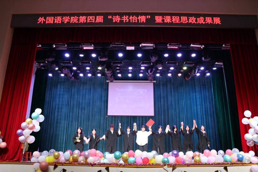 诗书是对精神的洗礼与陶冶,为了让广大学生热爱阅读、享受阅读,打造“书香校园”,5月30日,外国语学院在冀春音乐厅举办第四届“诗书怡情”暨课程思政成果展。