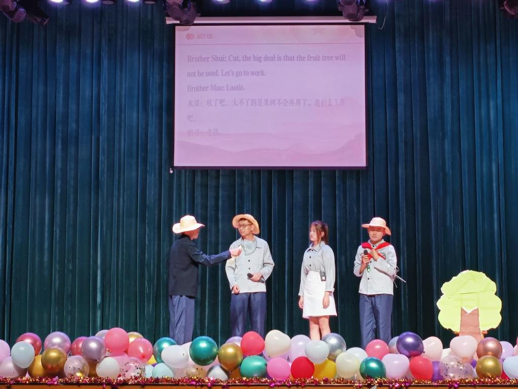 在“推荐一本好书”环节,同学们生动诠释了《西游记》《三国演义》《红楼梦》《水浒传》《简·爱》《哈利波特》中的经典情节。活动以英文歌曲《Something just like this》结束了这场令人愉悦的诗书之旅。