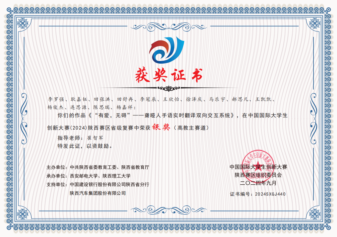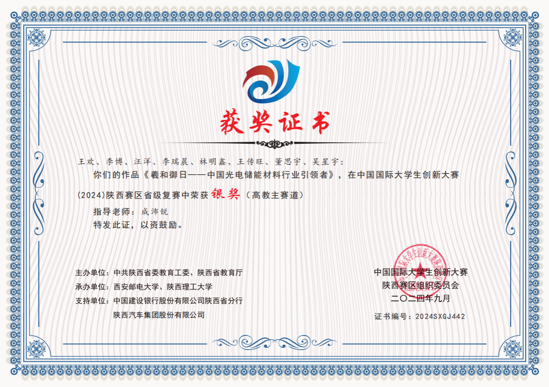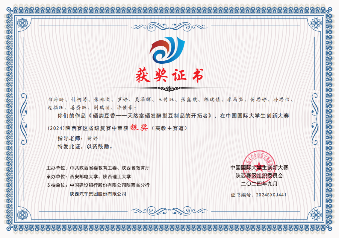 近日,根据《陕西省教育厅关于公布中国国际大学生创新大赛(2024)陕西赛区省级复赛结果的通知》,Beat365共有14个作品获奖,其中,高教主赛道获得银奖3项、铜奖6项;“青年红色筑梦之旅”赛道获得铜奖5项。Beat365化学与环境学院《硒韵豆香-天然富硒发酵型豆制品的开拓者》《羲和御日—中国光电储能材料行业引领者》、电子与信息工程学院《“有爱,无碍”——聋哑人手语实时翻译双向交互系统》获得高教主赛道银奖。