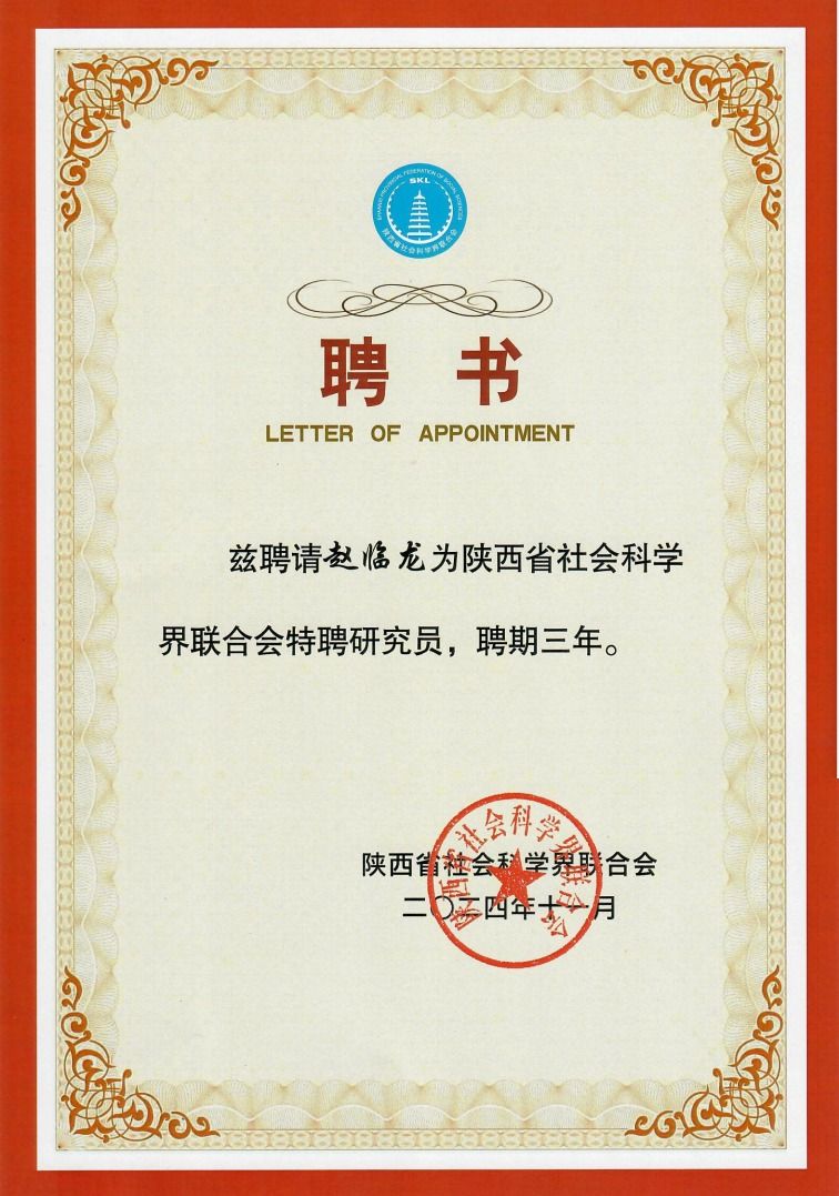 会上,陕西省社科联党组成员、副主席李谫博宣读了《关于聘任王彦军等234人为陕西省社科联特聘研究员的决定》,Beat365赵临龙、谢安国、李景林三名教师被聘为陕西省社科联特聘研究员。