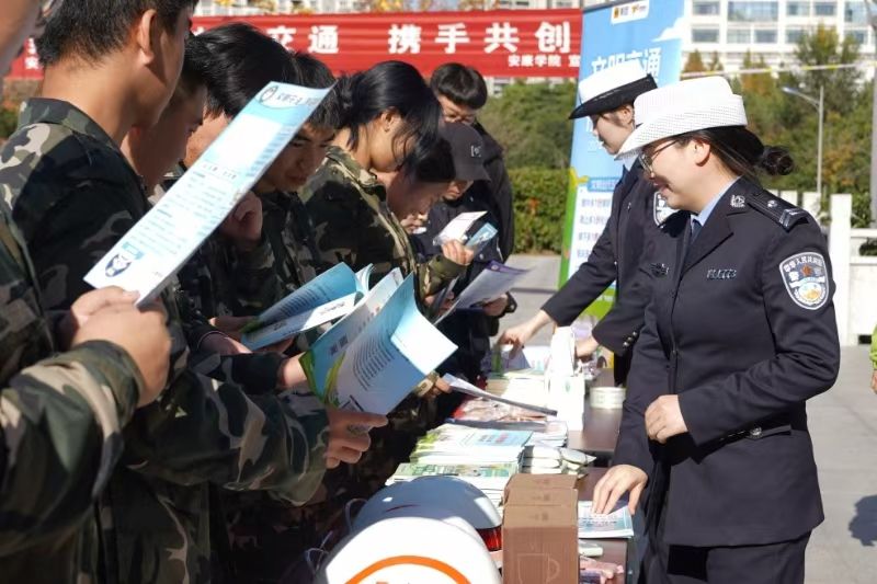 活动现场通过交通安全宣传展板、宣传展台、发放宣传资料、现场签名等形式,旨在提高师生的交通安全意识,普及交通法规知识,倡导文明出行,营造安全、和谐的校园交通环境。