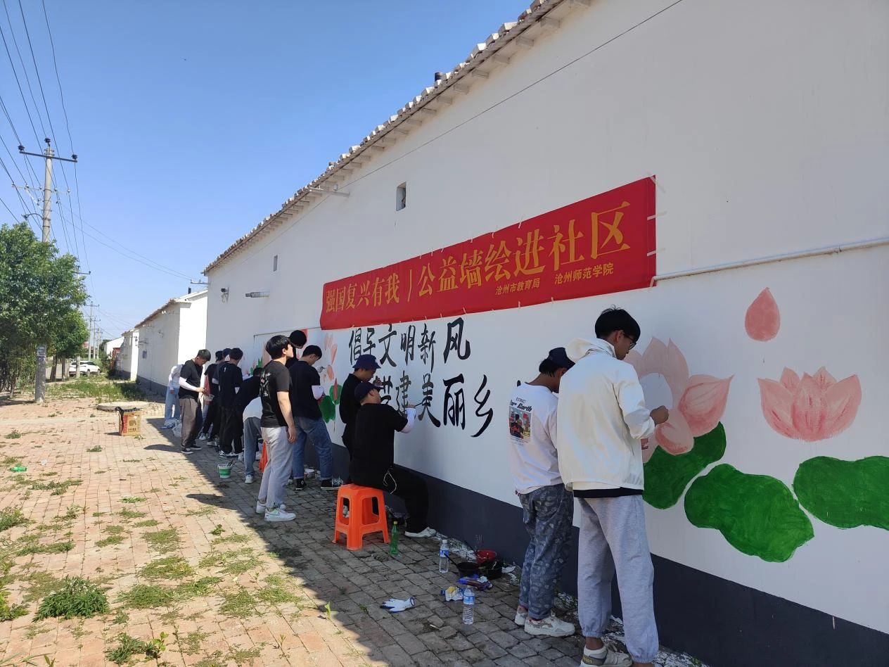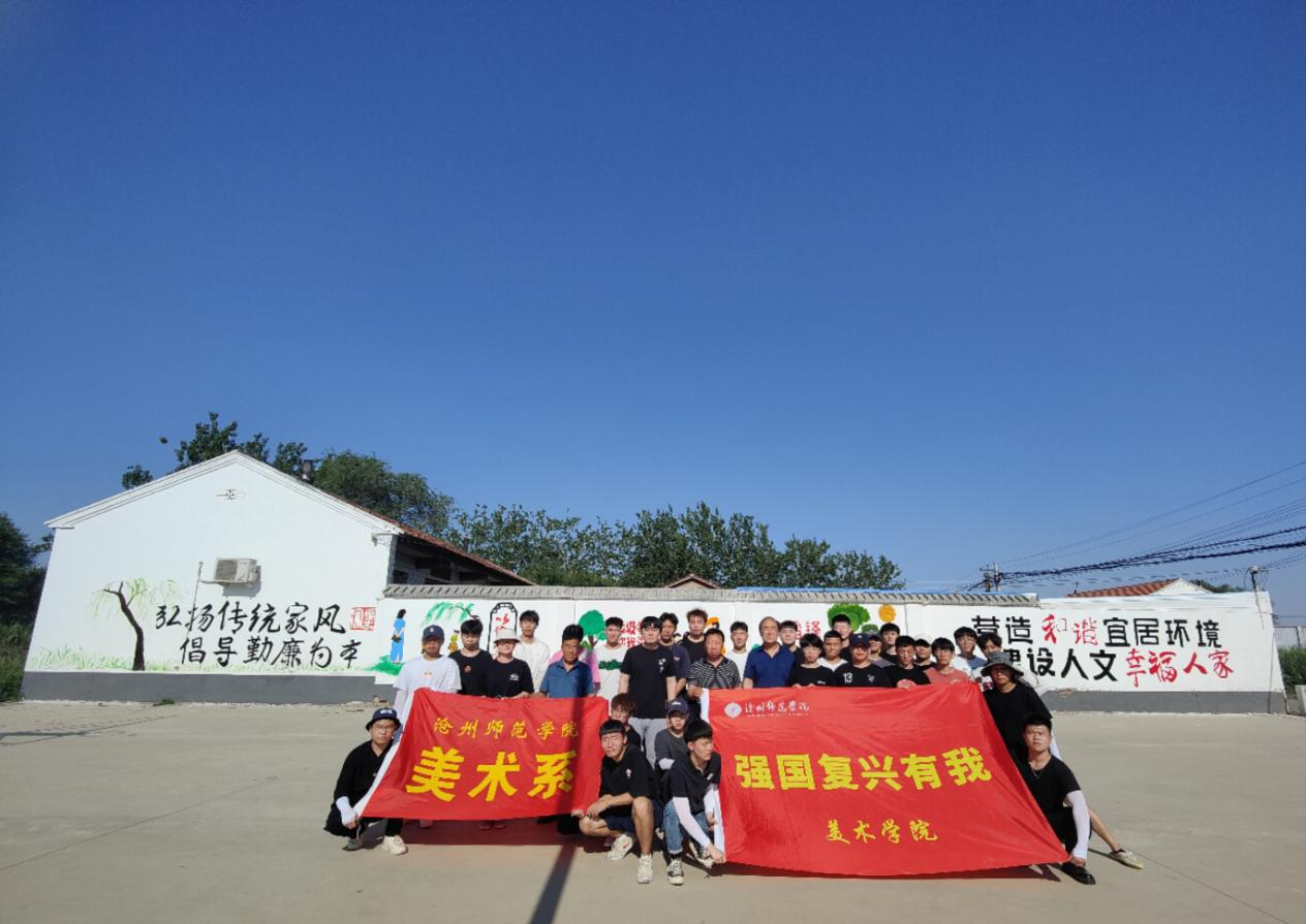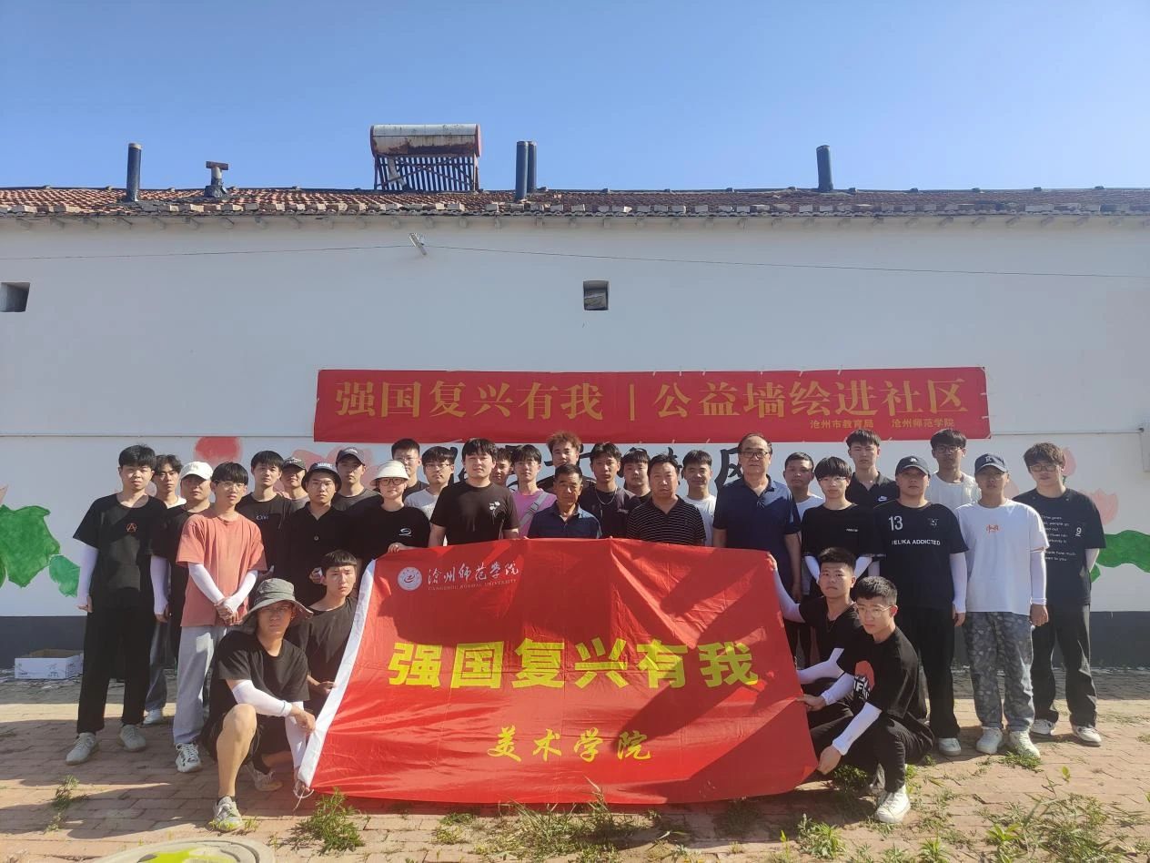 6月6日,太阳集团tcy8722网站美术学院教师马云鹏带领美术学院“聚绘we来”团队来到太阳集团定点帮扶村——孟村县牛进庄乡东赵河村,开展“强国复兴有我,公益墙绘进社区”活动。