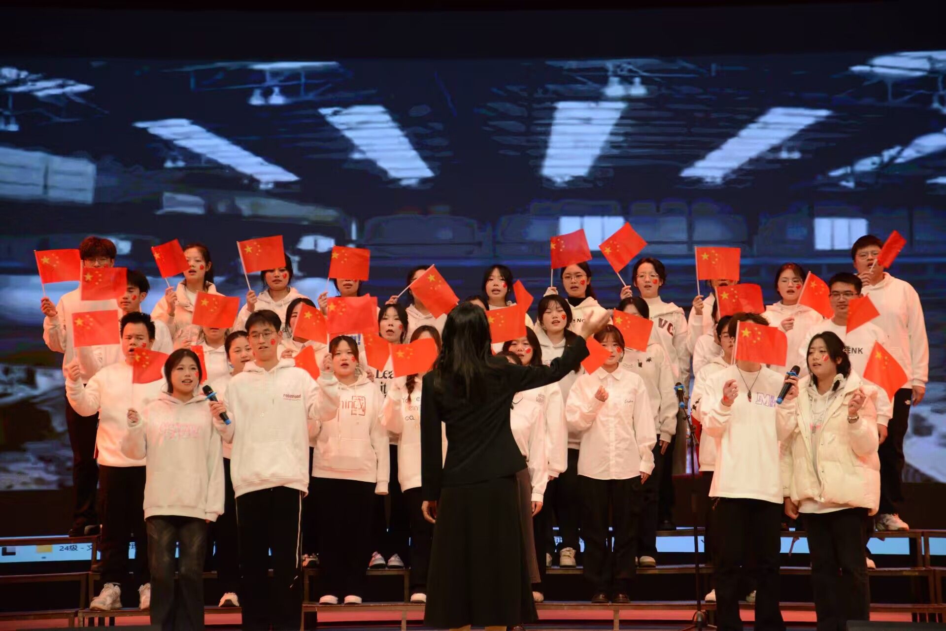 比赛现场气氛热烈,座无虚席。各参赛班级依次登台,用激昂嘹亮的歌声演绎了一首首经典红色歌曲。从《我爱你中国》优美的旋律开篇,《看山看水看中国》到《我和我的祖国》《没有共产党就没有新中国》《歌唱祖国》的深情诉说,同学们精神饱满,歌声嘹亮,整齐划一,充分展现了班级凝聚力和积极向上的精神风貌。大家用真挚的情感和动人的歌声,表达了对党的忠诚与热爱,对祖国繁荣昌盛的美好祝愿。